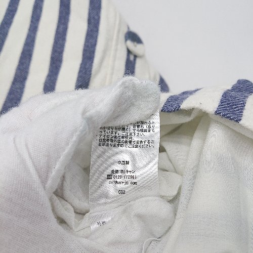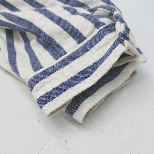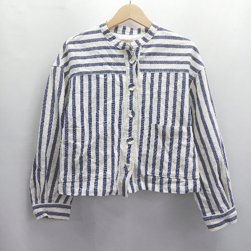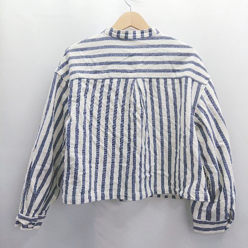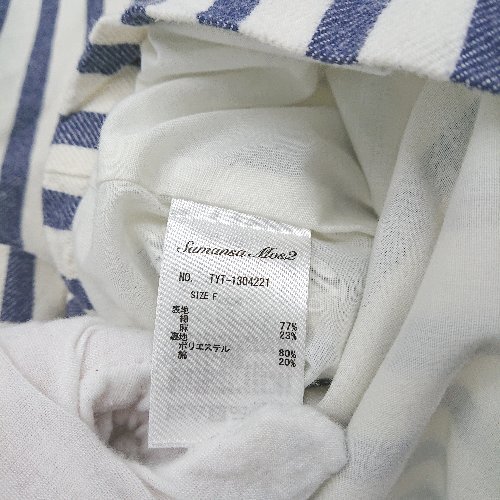 ◇ ⊂ SM2 サマンサ モスモス 綿麻混合 ボーダー柄 長袖 ブラウス サイズF ホワイト ブルー レディース E