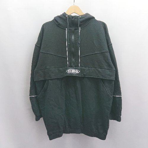 ◇ ⊇ X-girl エックスガール 綿100% ハーフジップ 長袖 パーカー サイズM ブラック レディース E