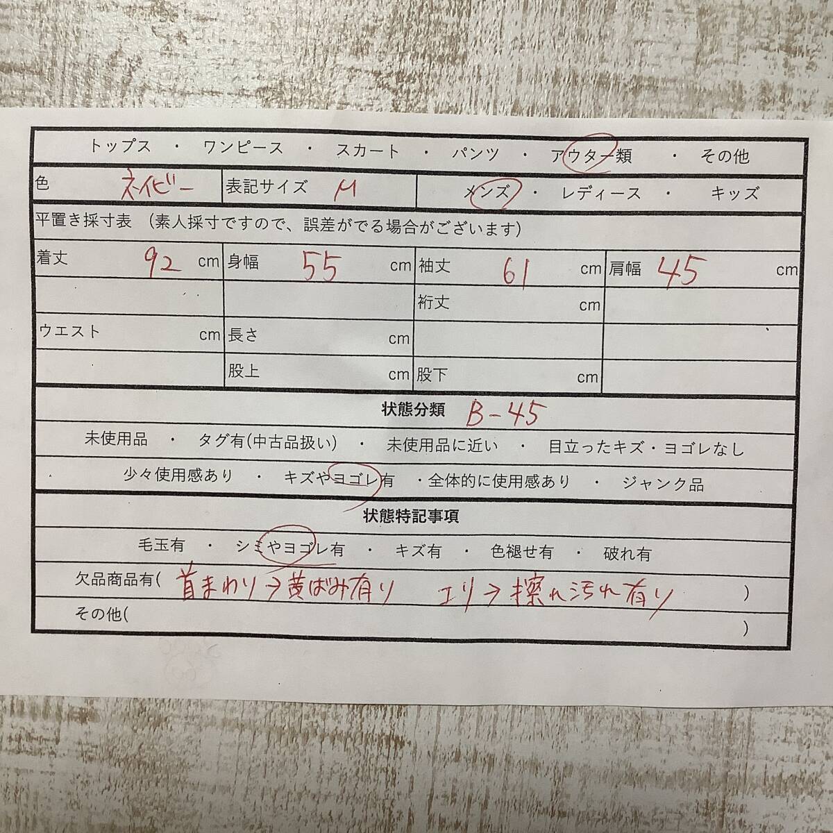 首まわり黄ばみございます。エリに擦れ汚れございます。
