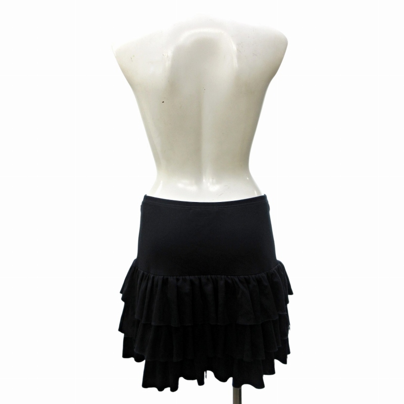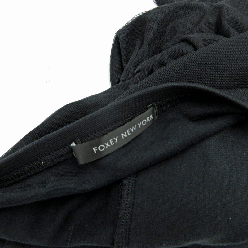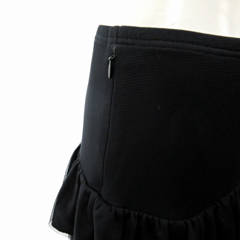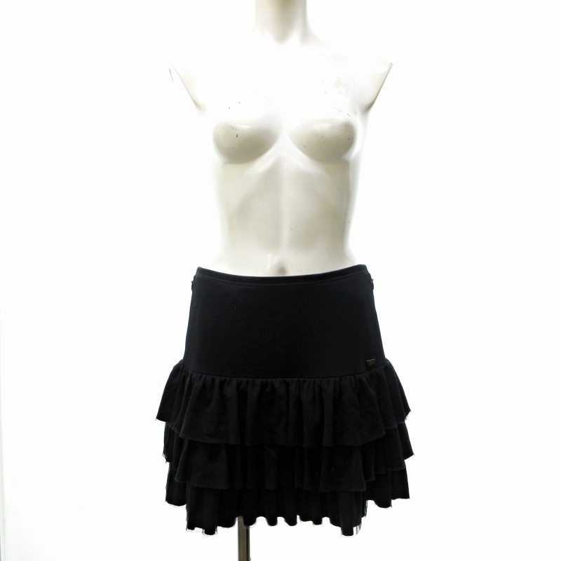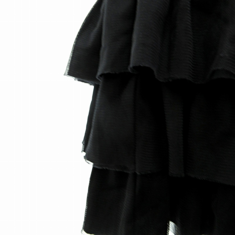 フォクシーニューヨーク FOXEY NEW YORK 26099 チュール ティアードフリル スカート ミニ ロゴプレート 黒 ブラック 40 約M 0608 IBO73