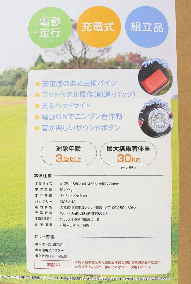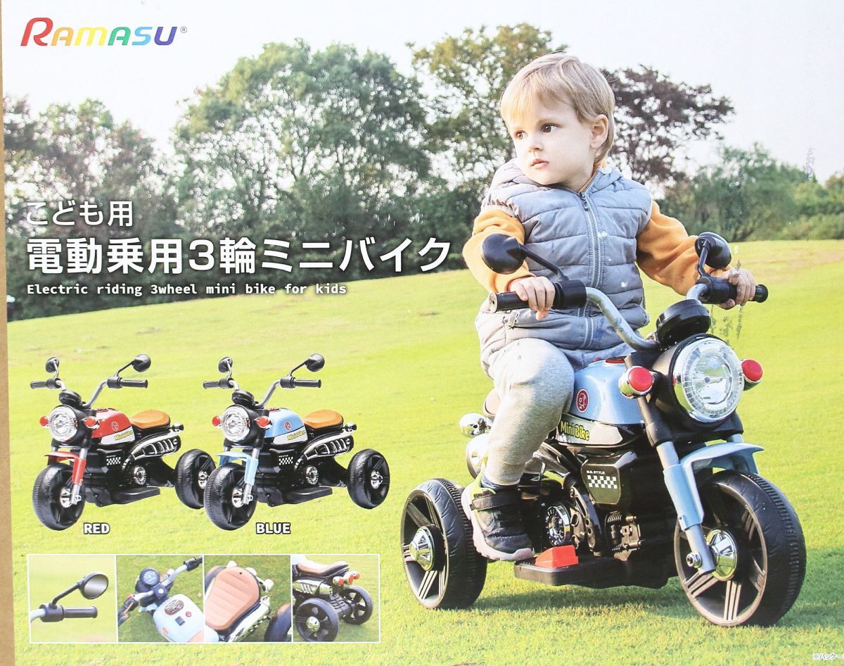 | ○【未組立】 RAMASU こども用電動乗用 3輪ミニバイク ブルー ○MOF09647 | |