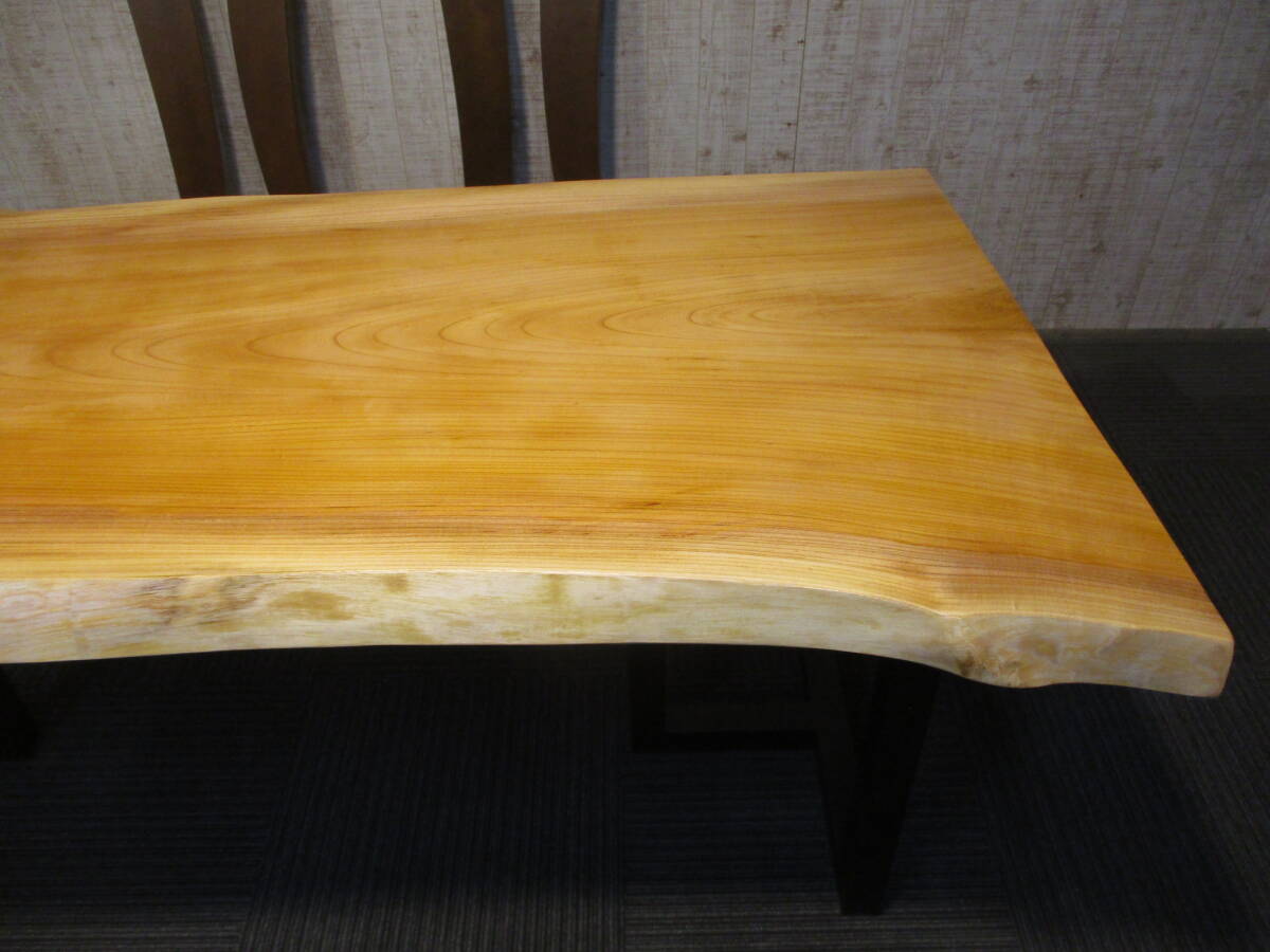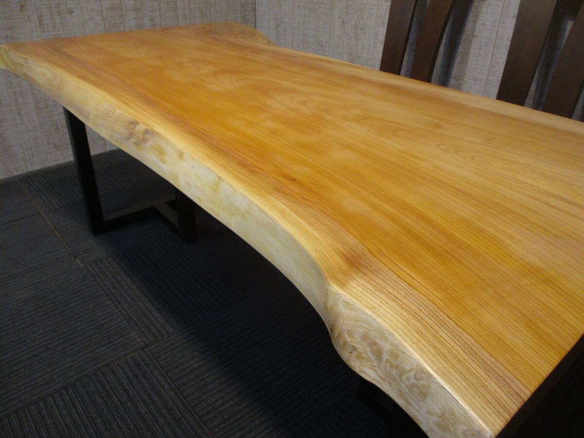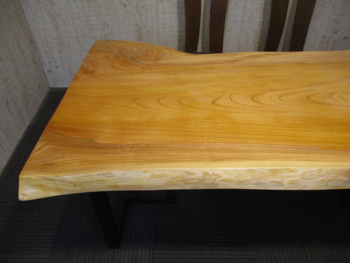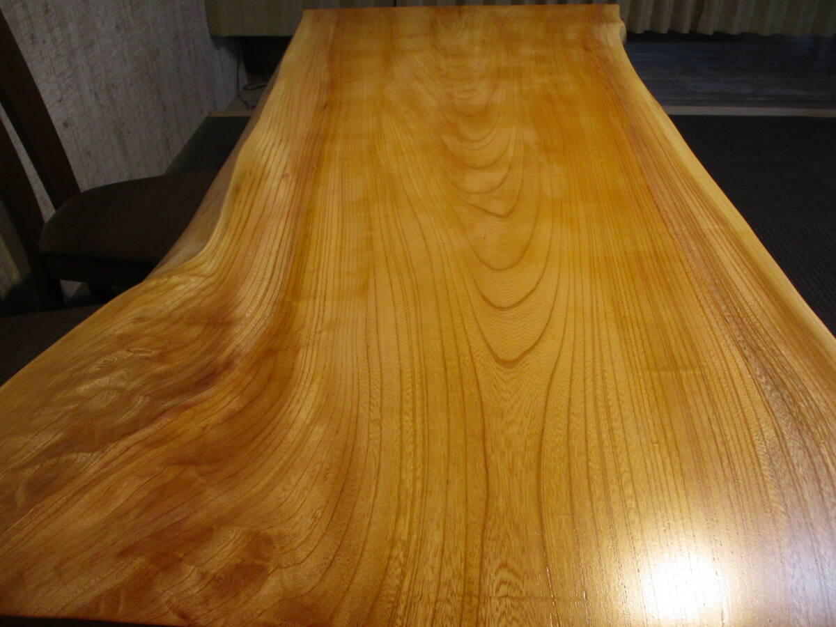 けやきの一枚板無垢のテーブルです。豪華な紅欅です。目立つ大きな節や節穴もなく、きれいに仕上がっています。