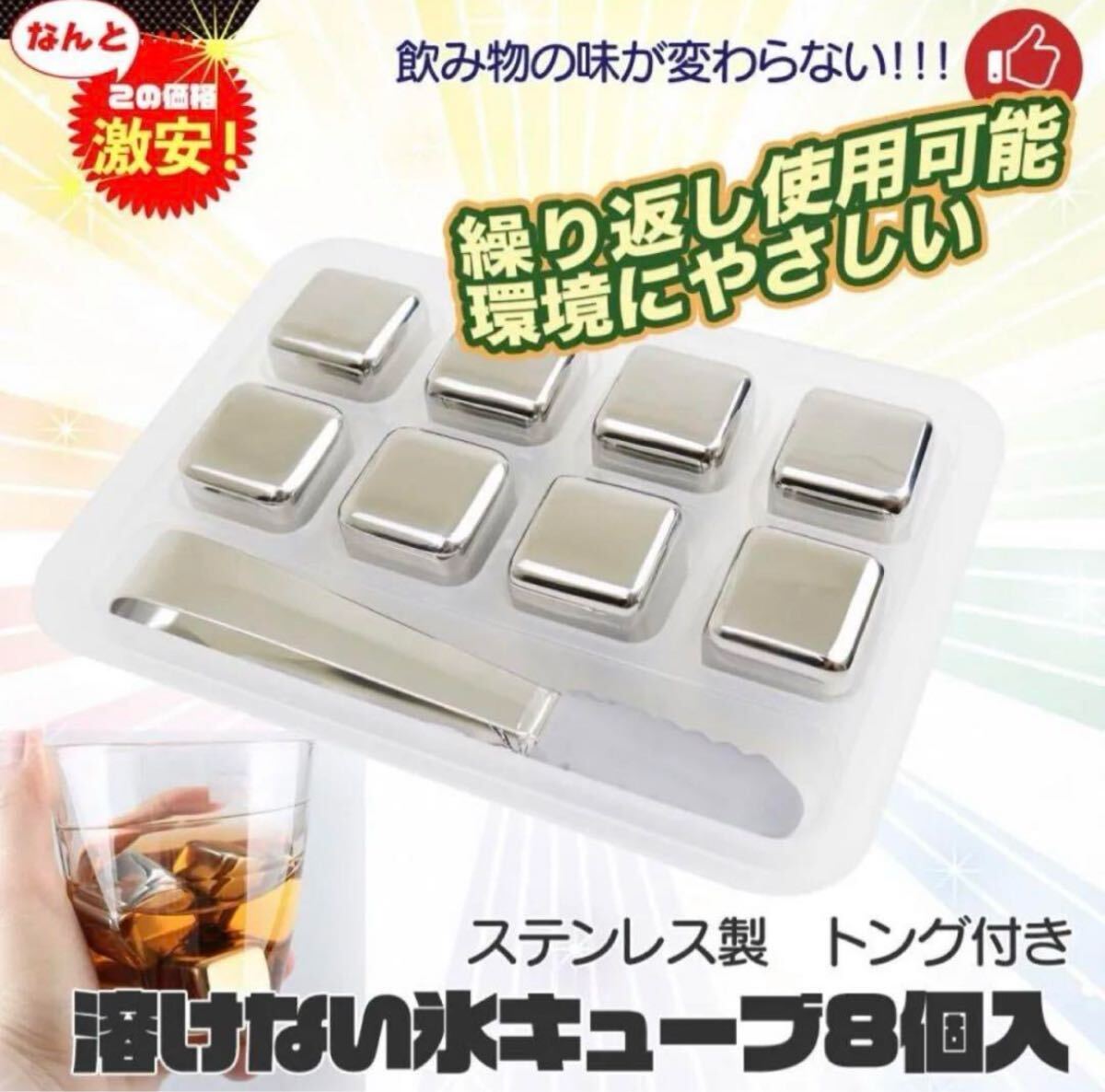 繰り返し使えるステンレス製のアイスキューブ8個入りです。