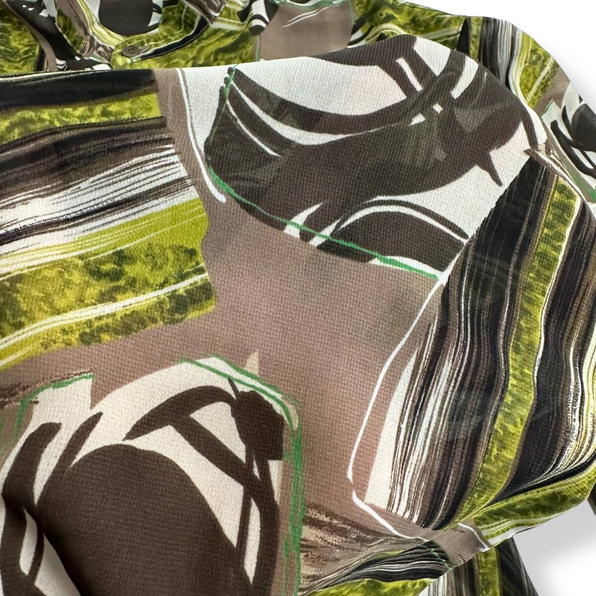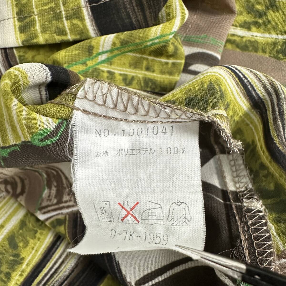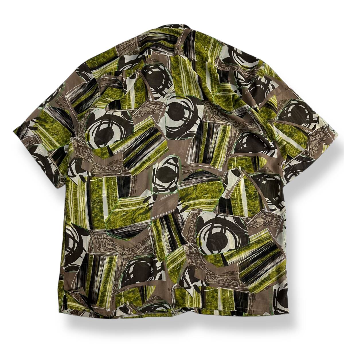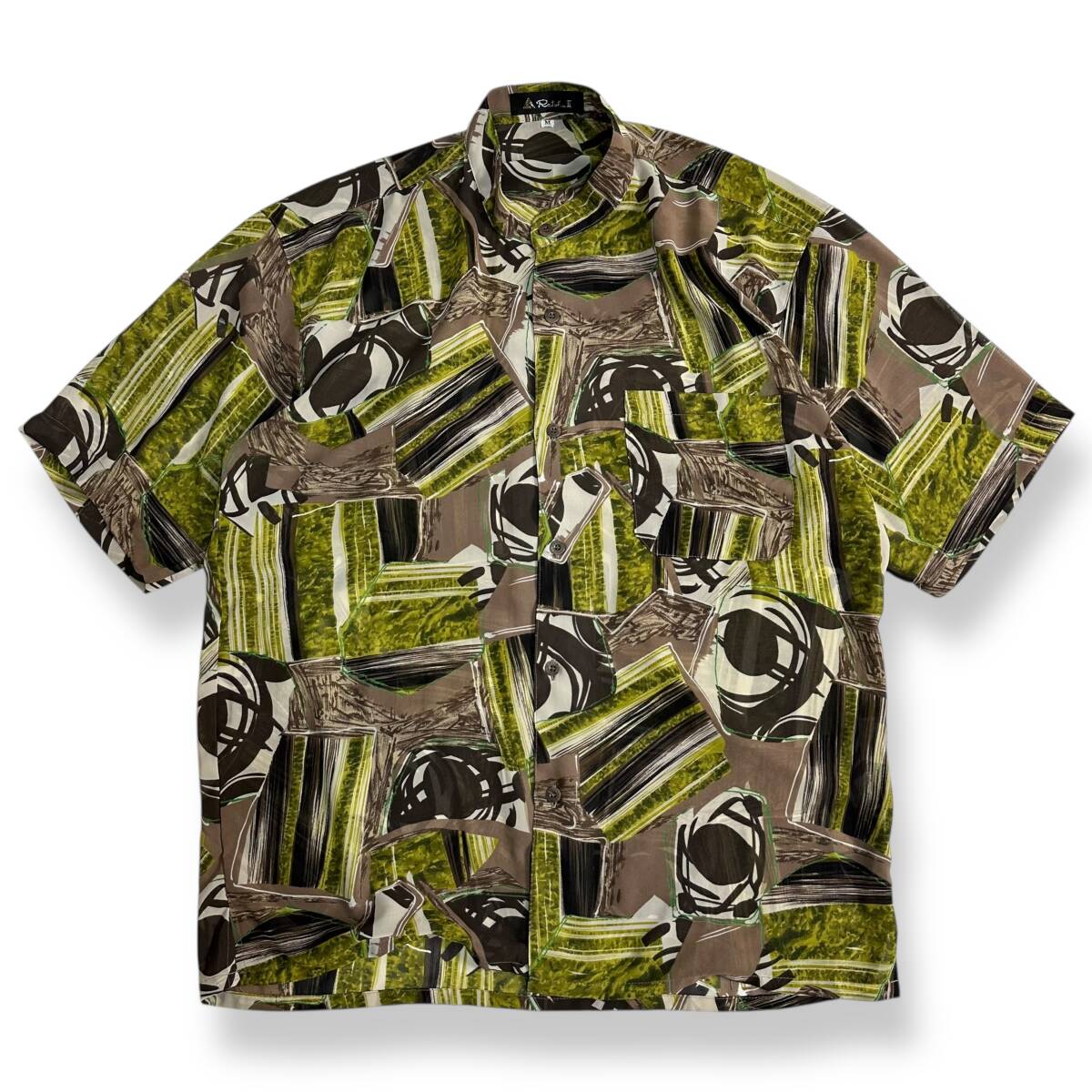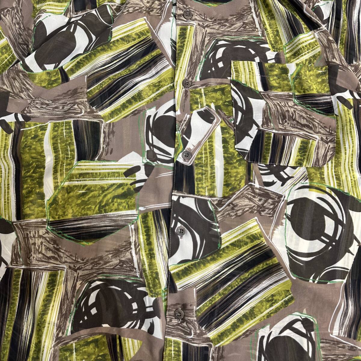 良好 貴重【Ratoku Ⅱ】VINTAGE 80s 90s 総柄 アートデザイン ポリエステル100% バンドカラー ビンテージシャツ シアーシャツ 個性的