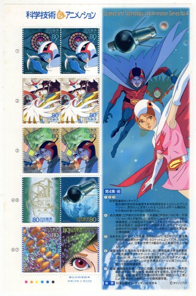 ★ 記念切手 2004年 科学技術&アニメーション 第4集 ガッチャマン ジョー・ジュン・甚平 80円 シート 未使用 ★