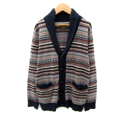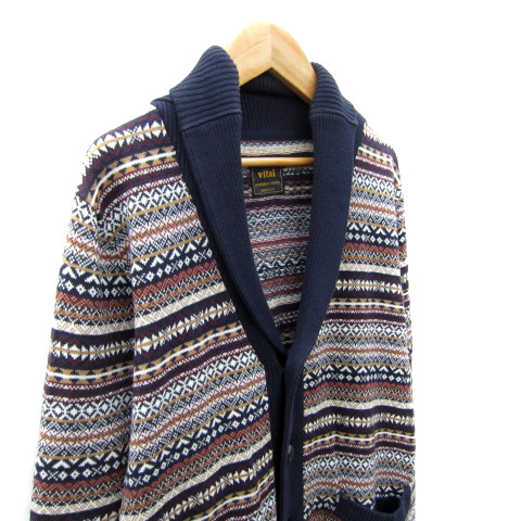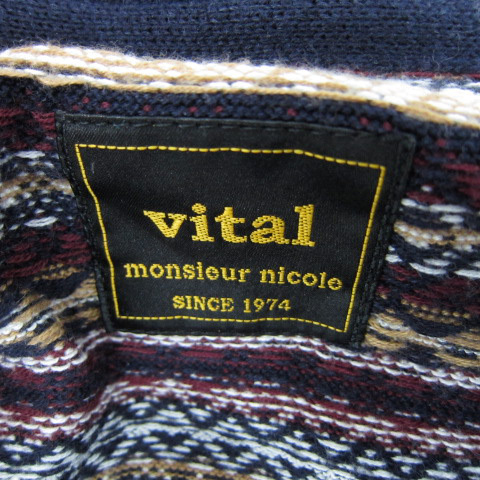 ムッシュニコル monsieur NICOLE vital ニットカーディガン ミドル丈 ショールカラー ノルディック柄 48 M 紺 ネイビー /SY9 メンズ