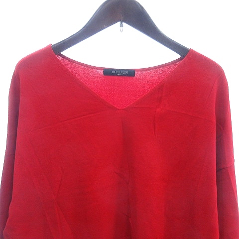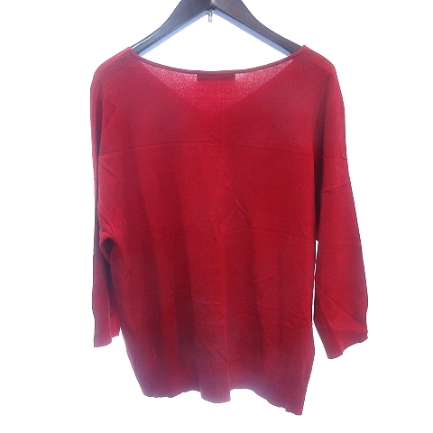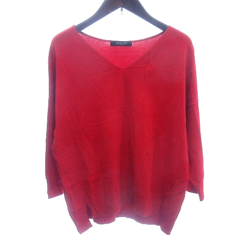 ミッシェルクラン MICHEL KLEIN ニット カットソー Vネック 七分袖 38 M 赤 レッド /AU レディース