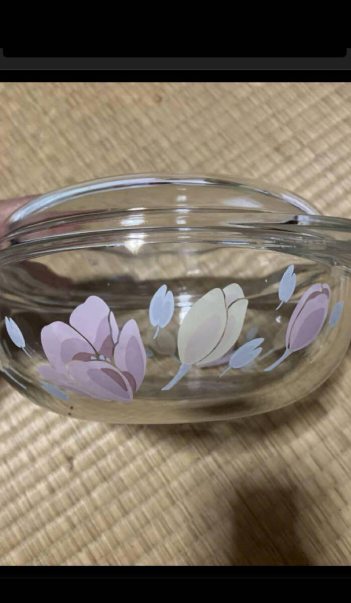 - デザイン: 花柄の装飾が施されたガラス製ボウ