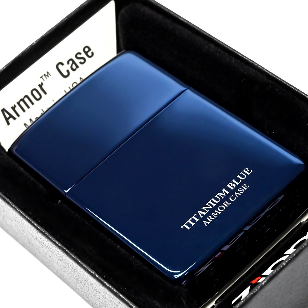 表とサイドにチタンの刻印とアーマーの刻印をデザインしたシンプルながら高級感のあるアーマージッポライターです