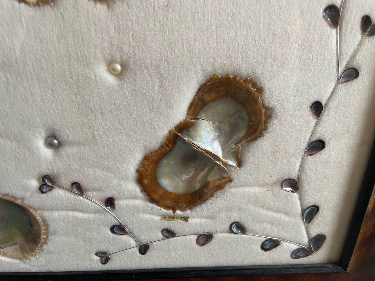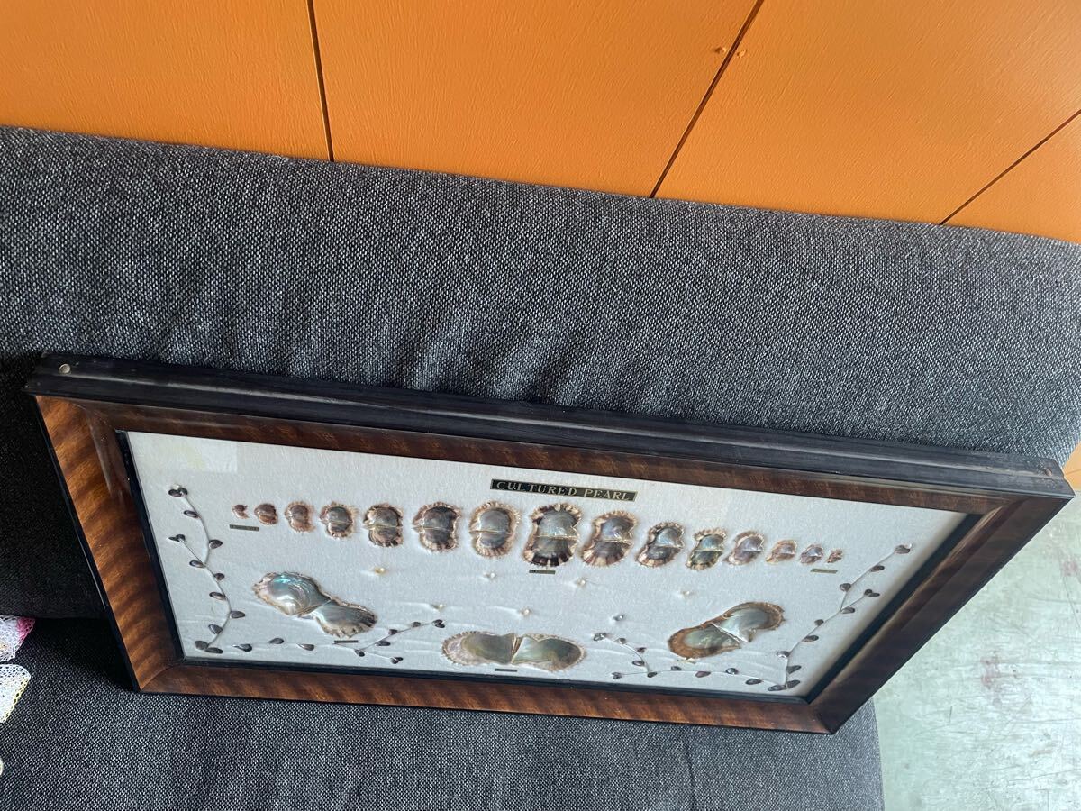 真珠貝のデザインが、美しく、かなりの年数保管していたとのことでした。額縁も、しっかりしており、高級感が、ありました。