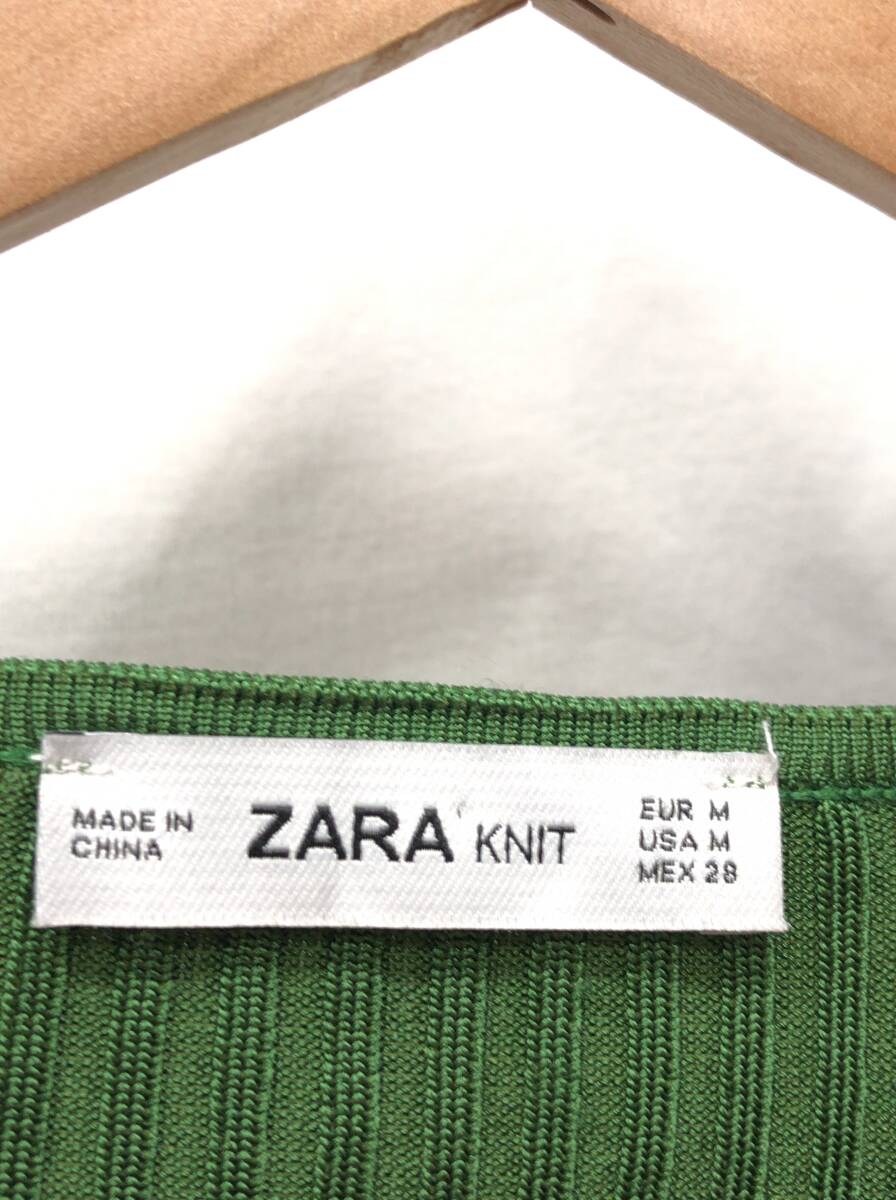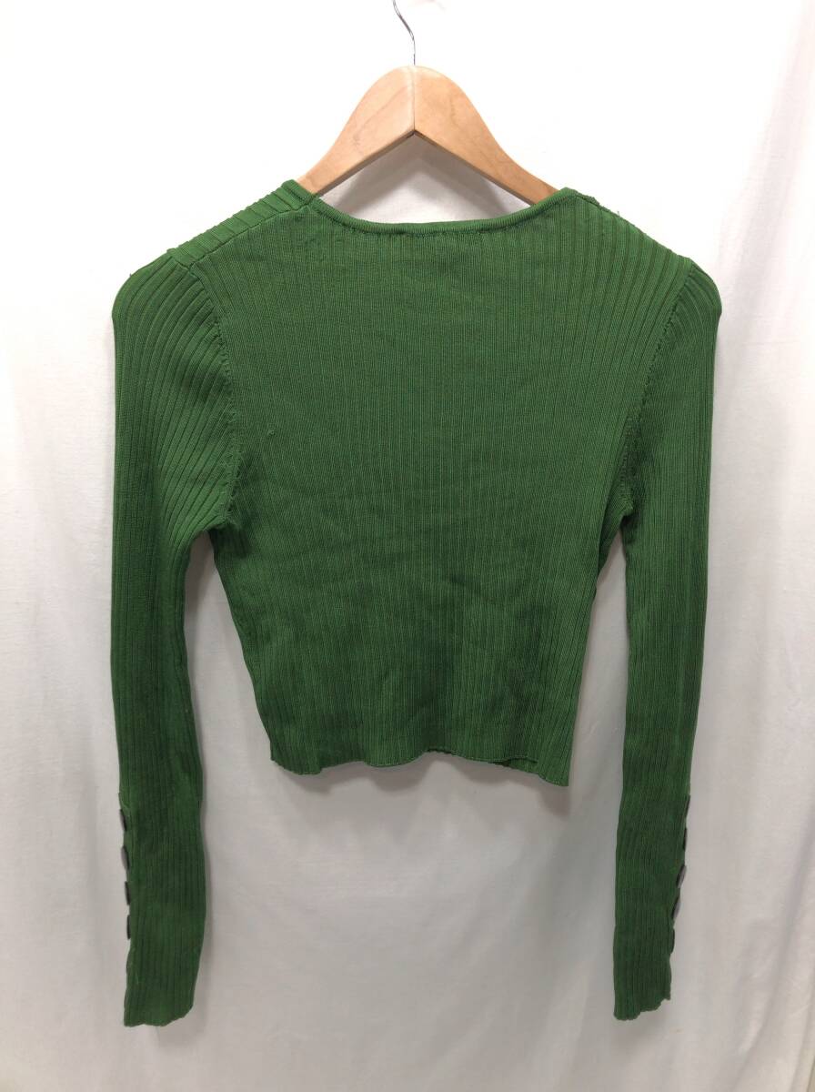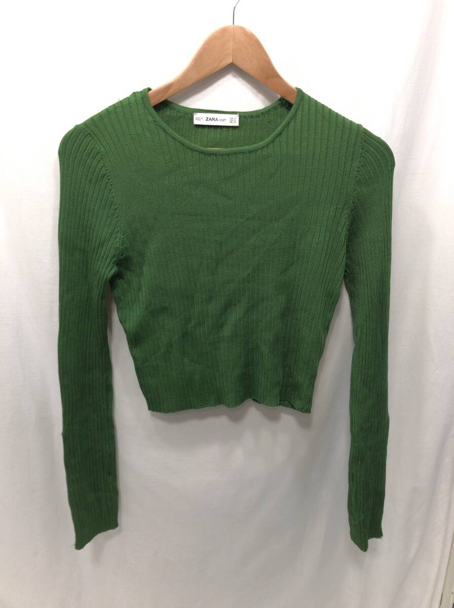 ザラ ZARA リブニット カットソー レディース EUR M USA M MEX28 グリーン ショート丈 長袖 B19