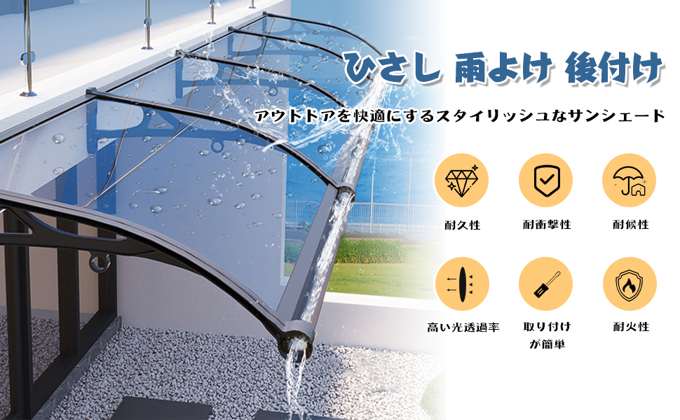 商品説明 プレミアム素材と耐久性: この屋根は高品質のポリカーボネートパネルと頑丈なアルミニウム合金ブラケットを使用しており、最大220ポンド(100kg)の耐荷重に耐え、ガラスの250~300倍の耐衝撃性を誇ります。過酷な気象条件にも耐え、長期間にわたって安定したパフォ