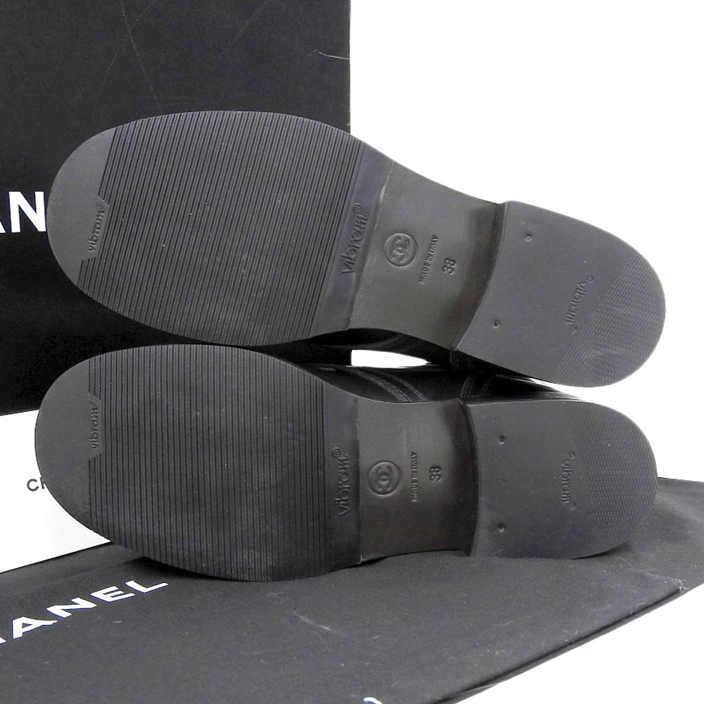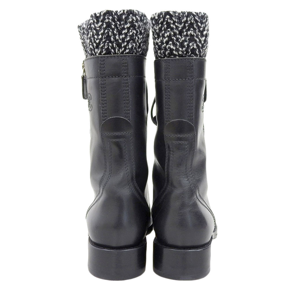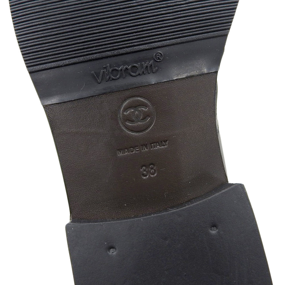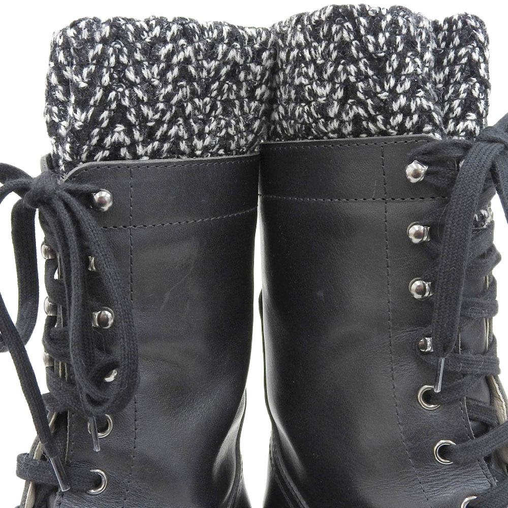 新品同様 CHANEL シャネル ココマーク レースアップ コンバットブーツ シューズ レディース レザー×ツイード ブラック 38 G27911