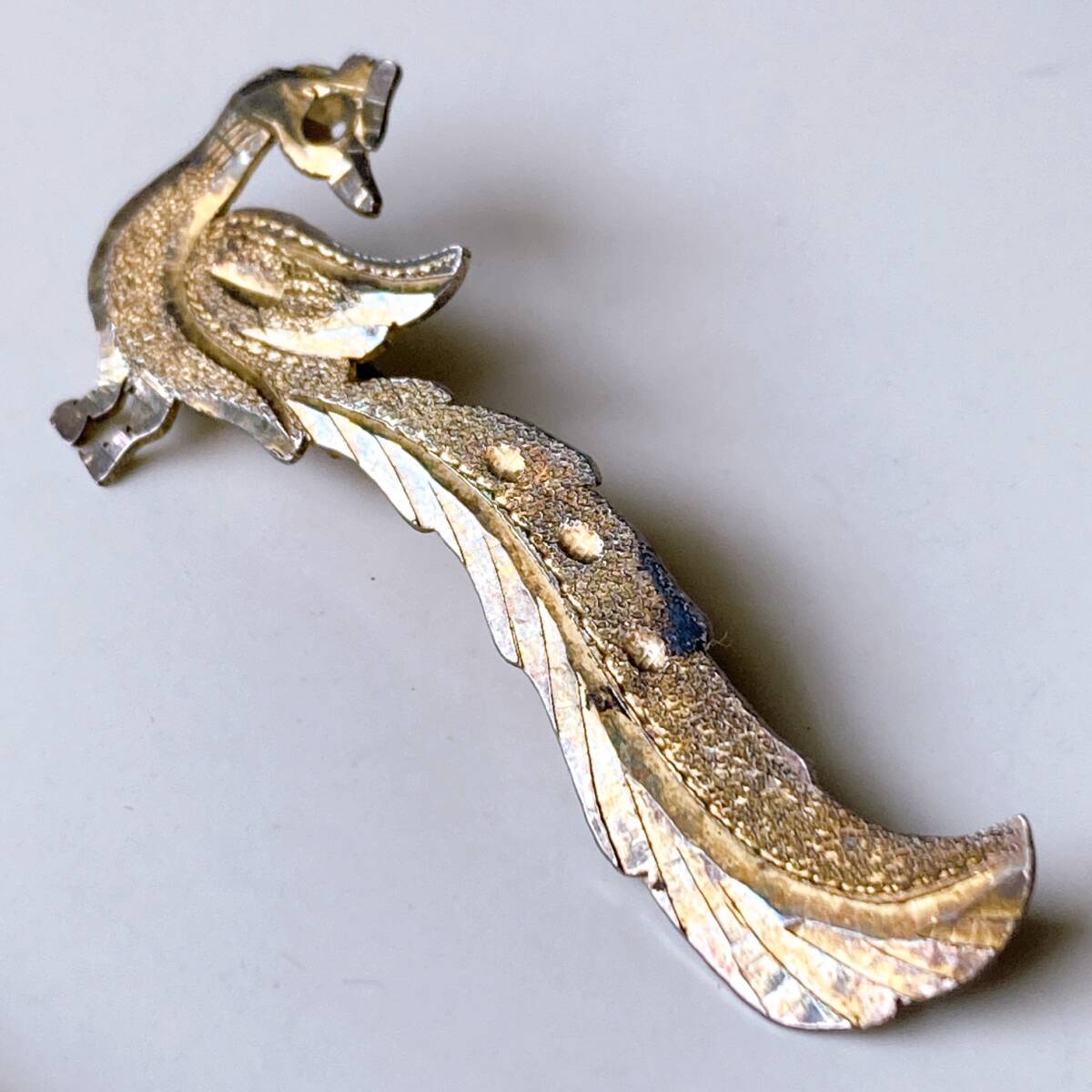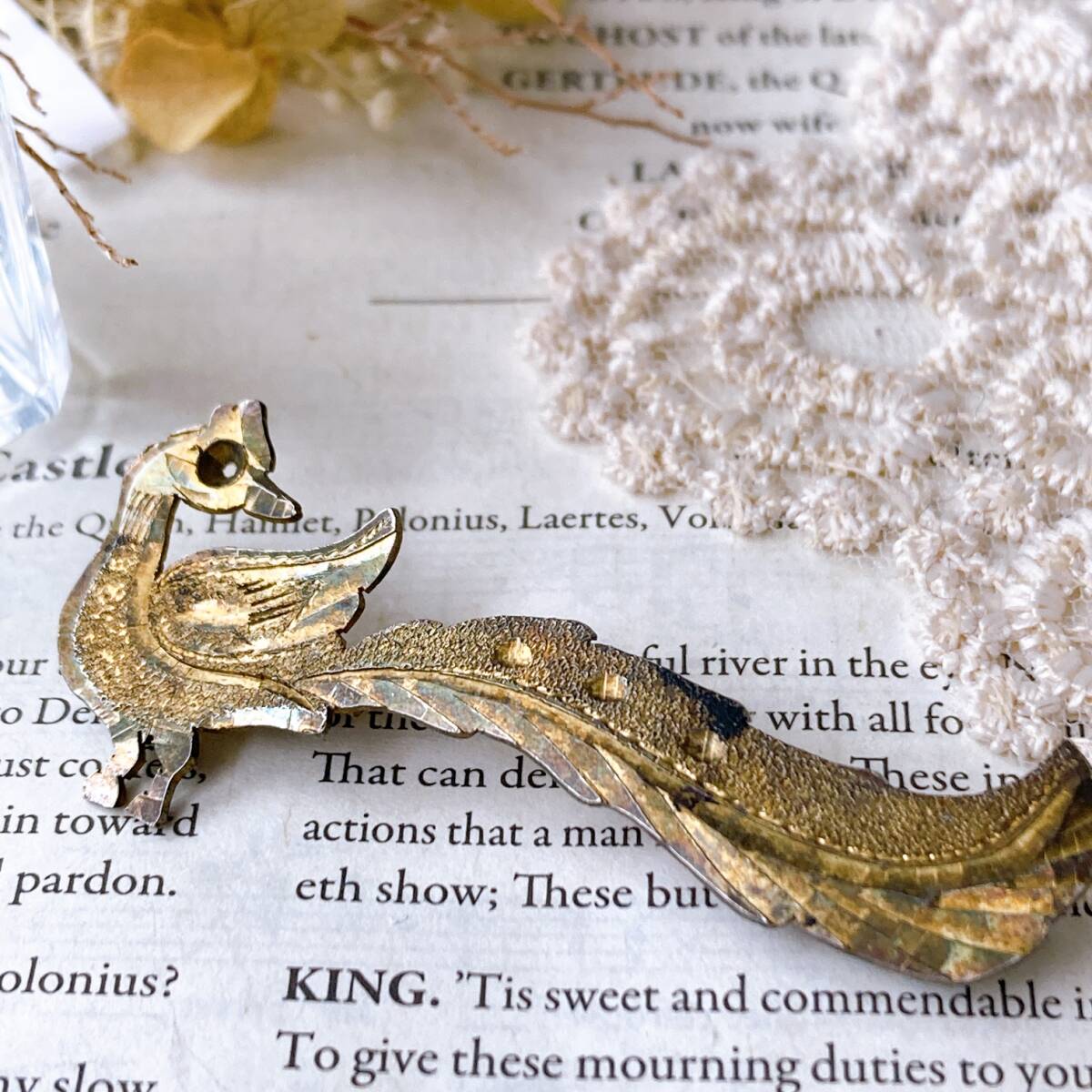 アンティークブローチ ゴールド クジャク キラキラ☆vintage jewelry accessoriesR0565