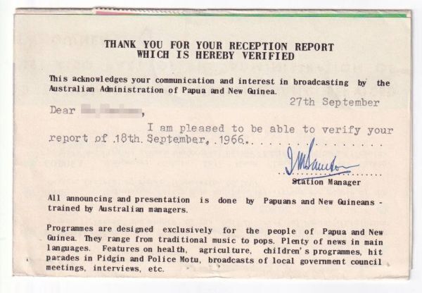 | 商品説明 | Radio Rabaul のベリカードです。拡げるとA4サイズより大きいです。カード取得者の名前は出品上、画像から消してあります。詳細は写真をご覧ください。 |