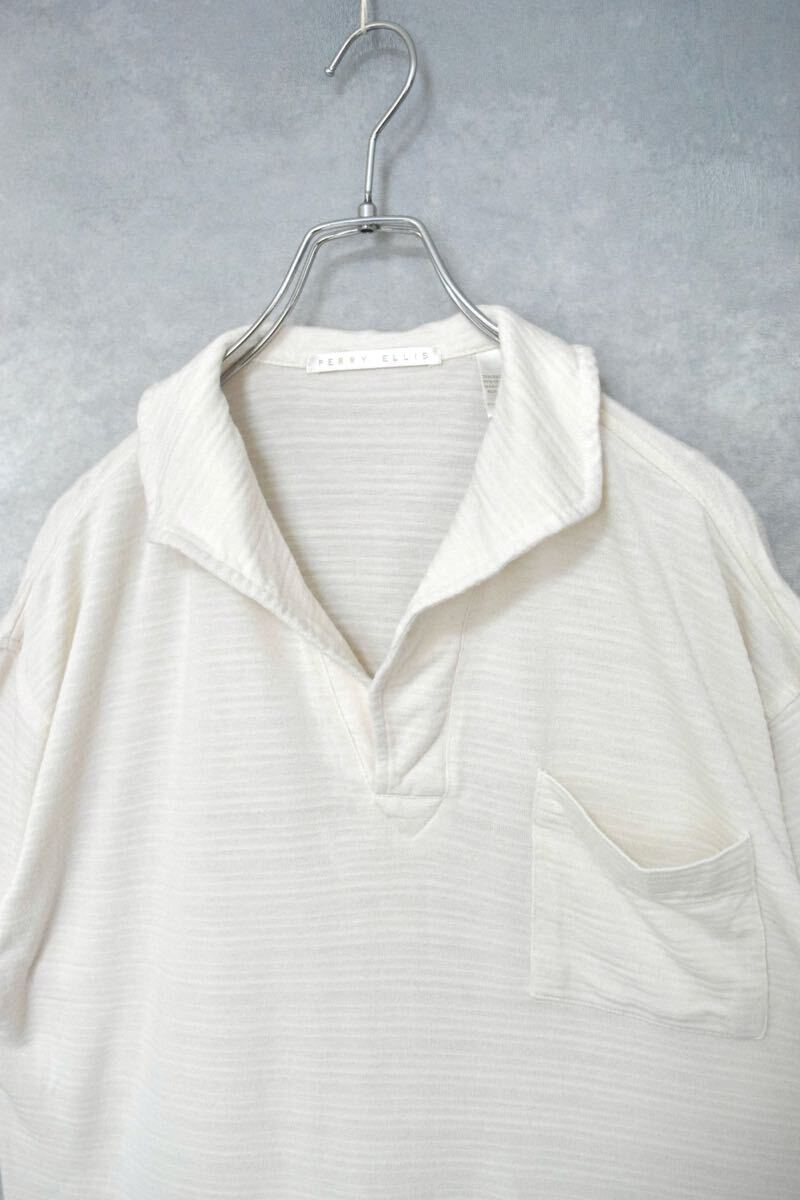 【 ペリーエリス 変形襟 】old " perry ellis " ホワイト レーヨンxコットン ハイゲージニット ポロシャツ / size L / 90s 90年代
