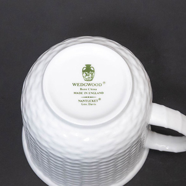 イギリスの名窯、ウェッジウッドのナンタケットのビーカー(マグ)。 大西洋に浮かぶ小さな島(ナンタケット島)の伝統工芸品で、"世界一美しいかご"と呼ばれるナンタケットバスケットにちなんで名づけられました。藤の網目をモチーフにしたレリーフが美しい、シンプルで飽きのこないシリーズです。マグの容量は300ml(満水時:350ml)です。 古いお品物ですが、キズ・汚れはもちろん、貫入などの経年劣化もありません。 ■サイズ 直径90 × 高さ89mm ■付属品 なし ■状態 A(美品):使用感のない、非常に状態の良いお品物です。 |