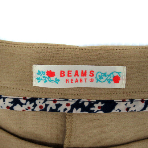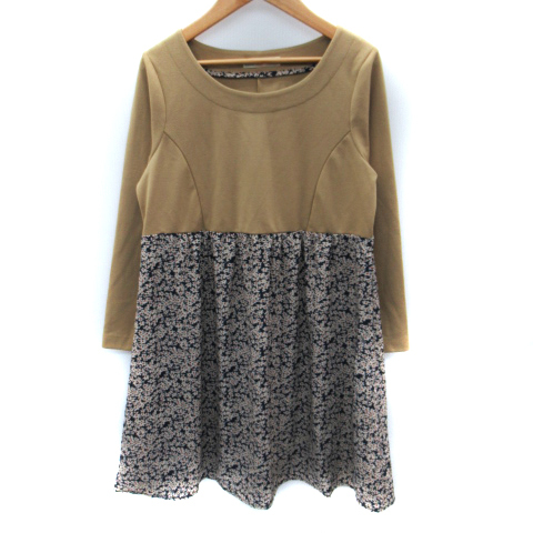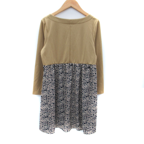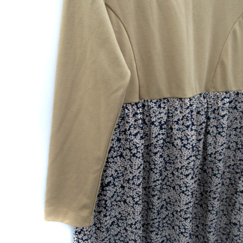 ビームスハート BEAMS HEART ワンピース ミニ丈 長袖 ラウンドネック 花柄 切替 F マルチカラー ベージュ 紺 ネイビー レディース