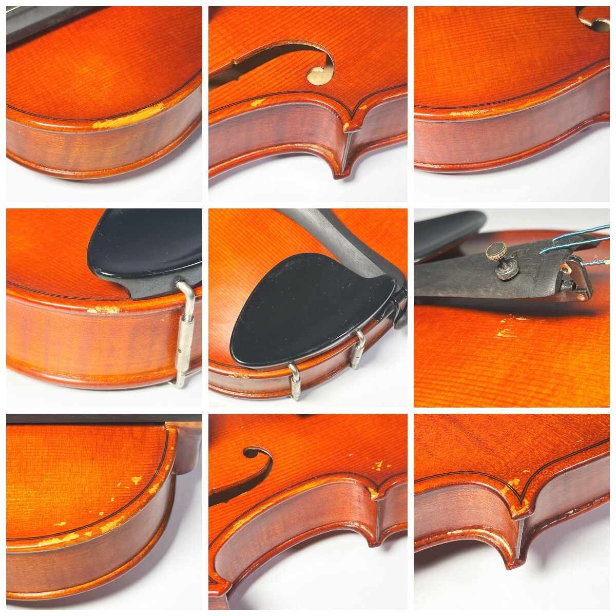 | ●中古品の為細かなスレ傷などございます。 ●駒が欠品しておりましたが、魂柱転倒防止の為、当ショップ備品の駒を仮で立てておりますので、接地面が合っておりません(掲載写真参照) ●横板のエンドピン付近の接合部に隙間がございます(掲載写真参照) |