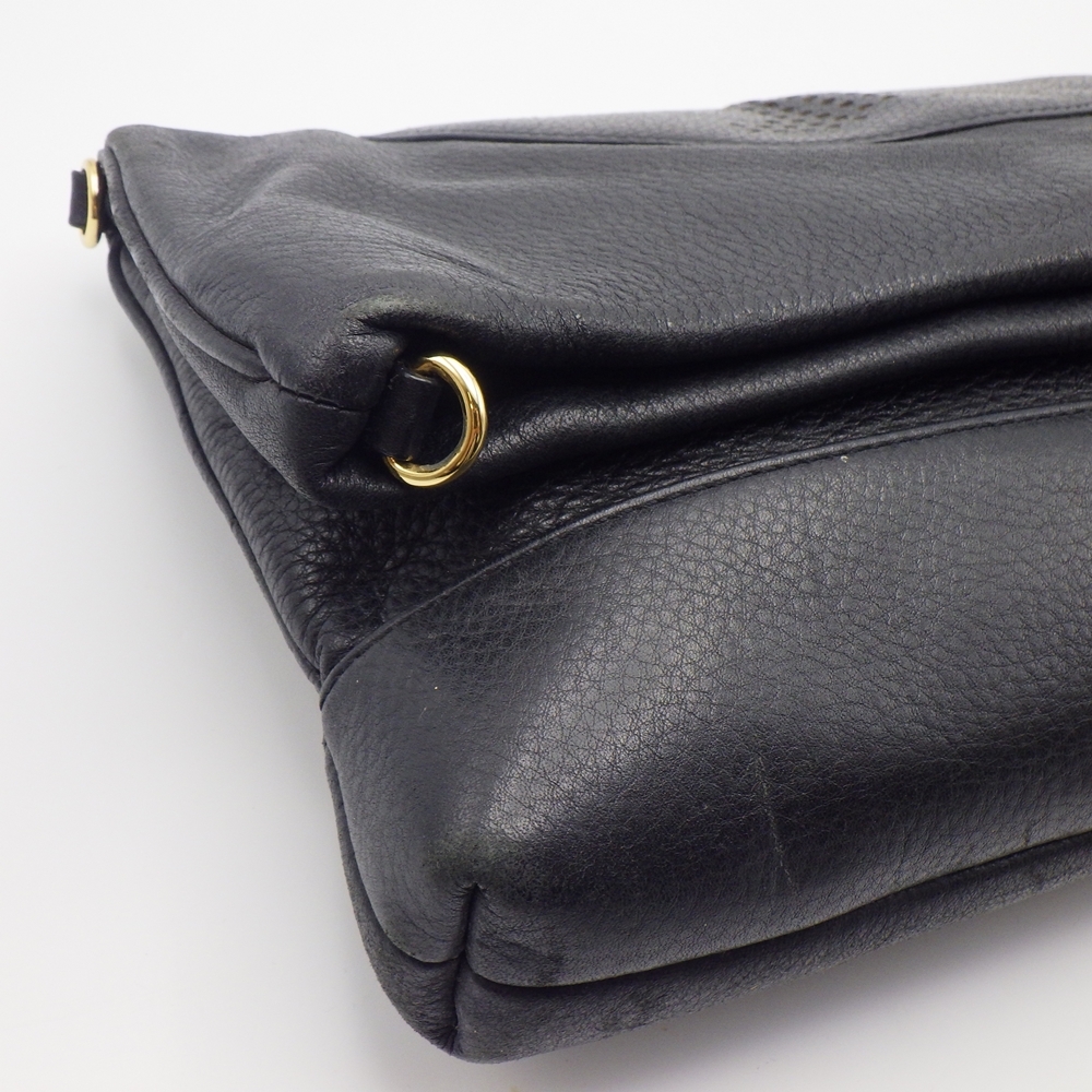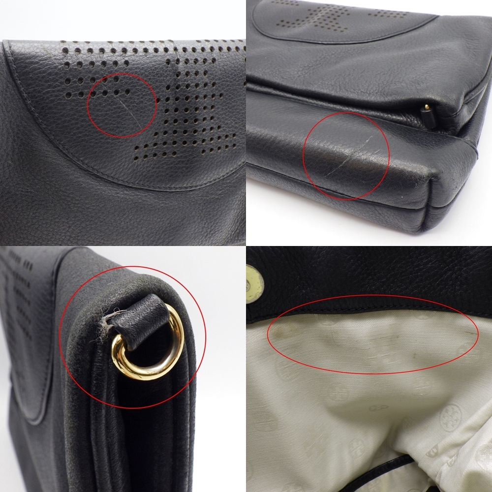 C25-1162 TORY BURCH トリーバーチ クラッチバッグ ブラック レザー パンチング ロゴ レディース 中古 購入証明書付 ※ストラップ欠品