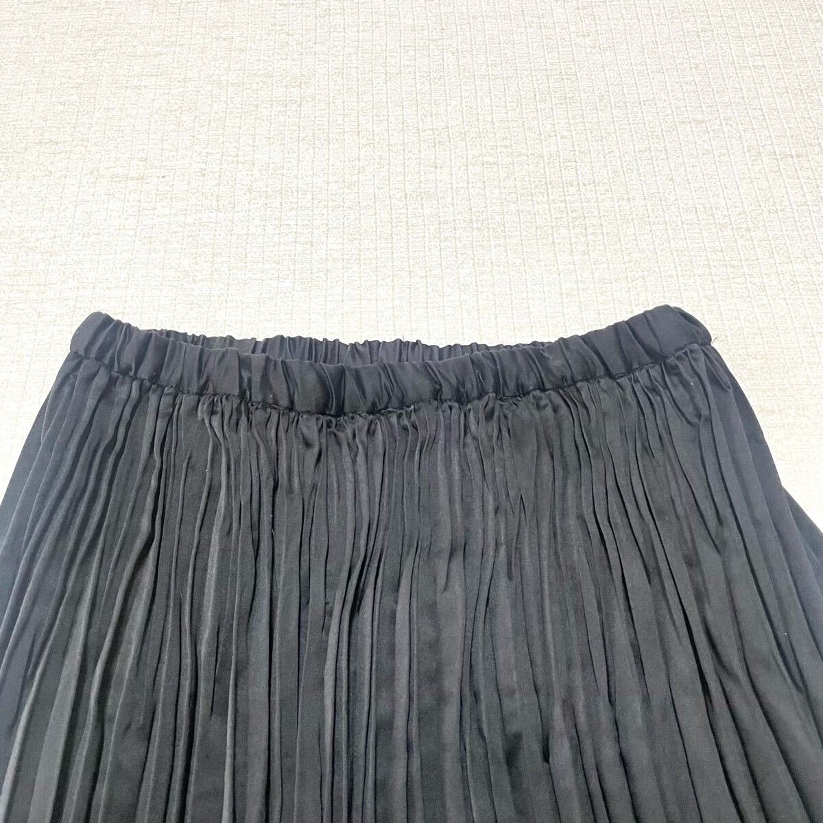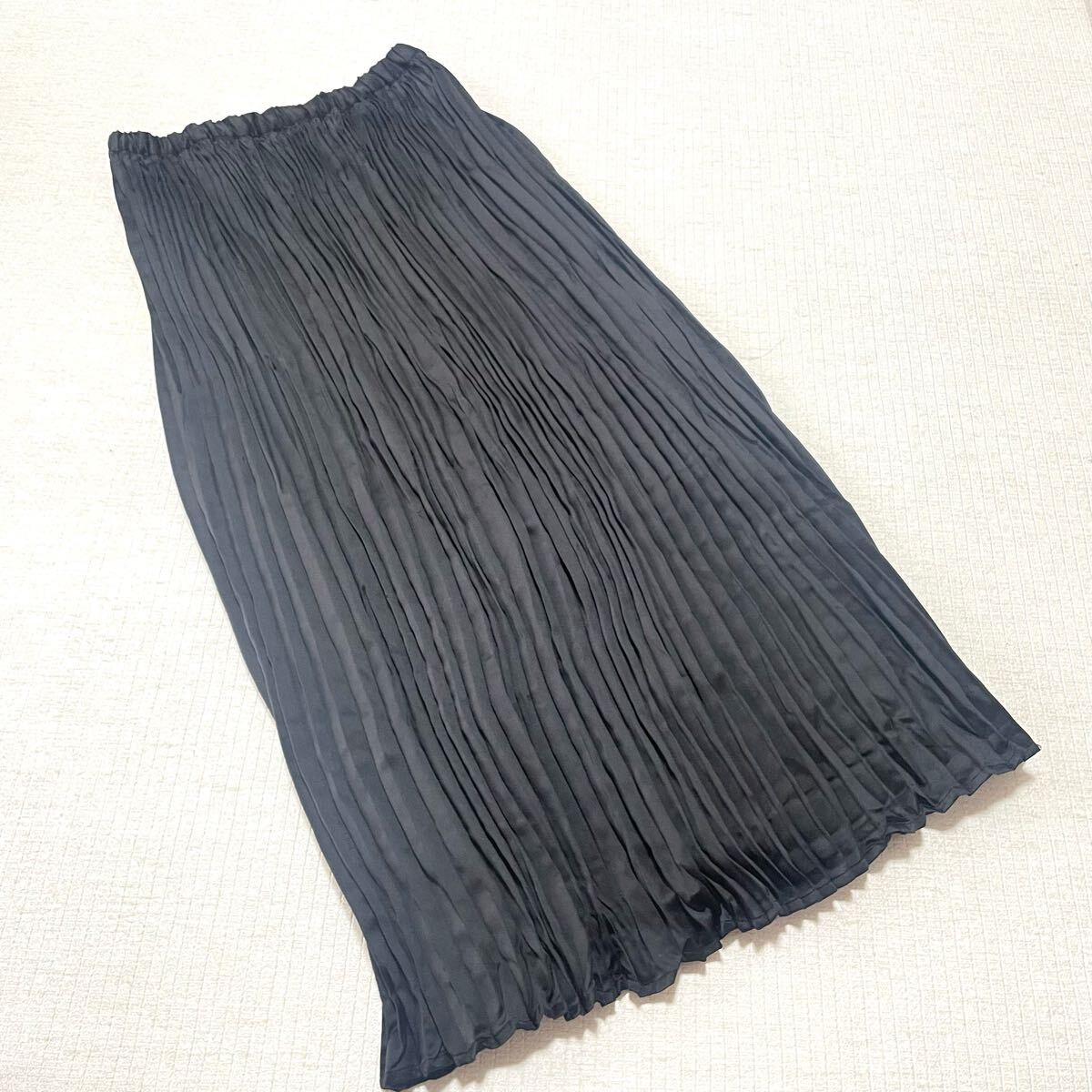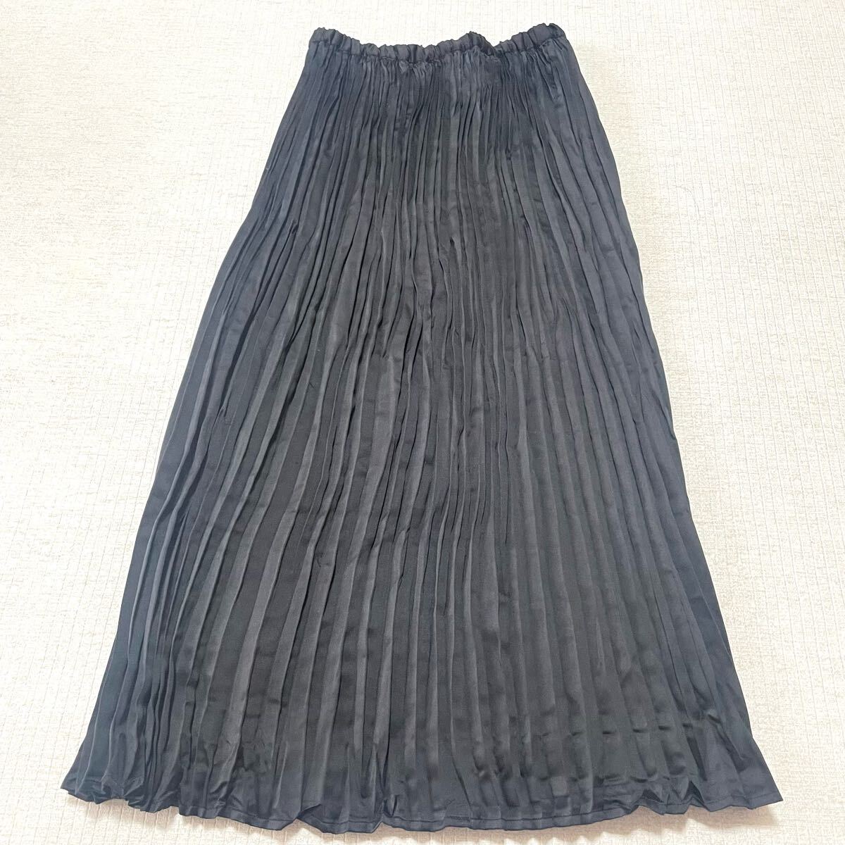 earth music&ecologyのプリーツロングスカートです。上品なブラックカラーで、どんなトップスにも合わせやすい万能アイテム。動くたびに揺れるプリーツが女性らしさを演出。カジュアルにもきれいめにも◎。
