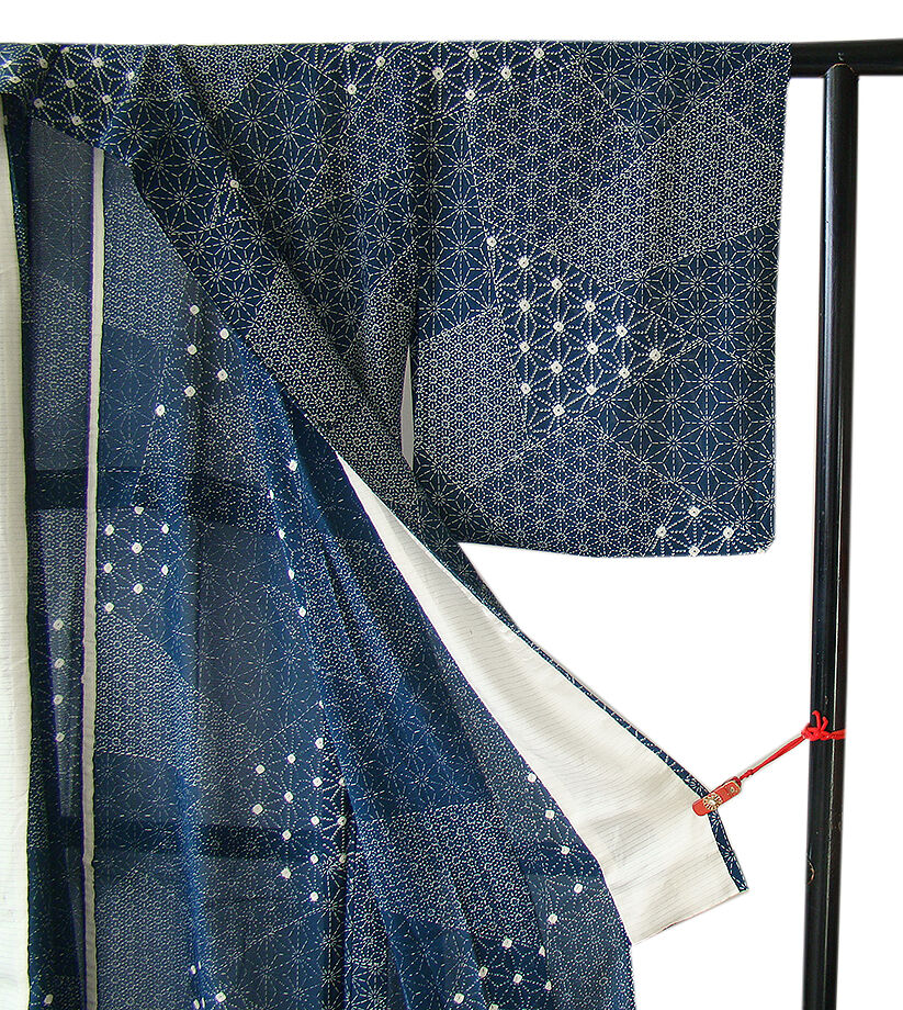 商品説明 | こちらのお品は夏物でございますので、7月~8月にお召頂ければと思います。 「絽」と言えば、紗と双璧を成す夏のお着物の生地で その最大の魅力は絶妙の透かし加減でございます。 清涼感溢れる地の風を通すしなやかさは夏に着物を着るという贅沢を 快適に愉しませてくれることでしょう。 着物には、大きく分けて「袷(あわせ)の着物」と「単衣(ひとえ)の着物」と「夏着物」があります。 反物(表地)を着物に仕立てるときに、裏地類をつけるものを袷の着物、 つけないものを単衣の着物と呼び、胴裏や八掛といった裏地がつかない一枚ものの着物です。 また裏地がないため、座る時などにヒップのラインが目立たないよう、 居敷当て(いしきあて)の生地をつけることもあります。 居敷当ては付いておりません。 とてもしなやかなさらっとした肌触りが極上の着心地を誘う滑らかな上質な「駒絽」の生地、 高麗納戸色地に白色の麻の葉柄の染柄に絞りの飛び柄が 洒落感に満ちた粋な着物姿を演出しております。 |