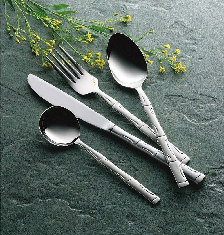 ☆バンブーデザートナイフ・フォーク・スプーン各2本計6P18-8ステンレス製