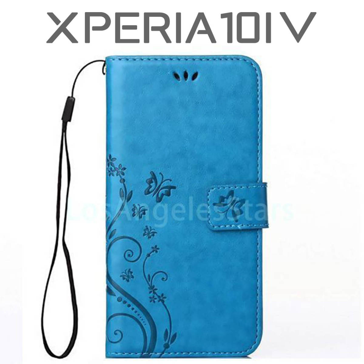 Xperia10IV ケース 手帳型 おしゃれ かわいい ブルー 青 SOG07 カバー SO52C スマホケース A202SO レザー SO-52C 革 花 蝶 送料無料 安い