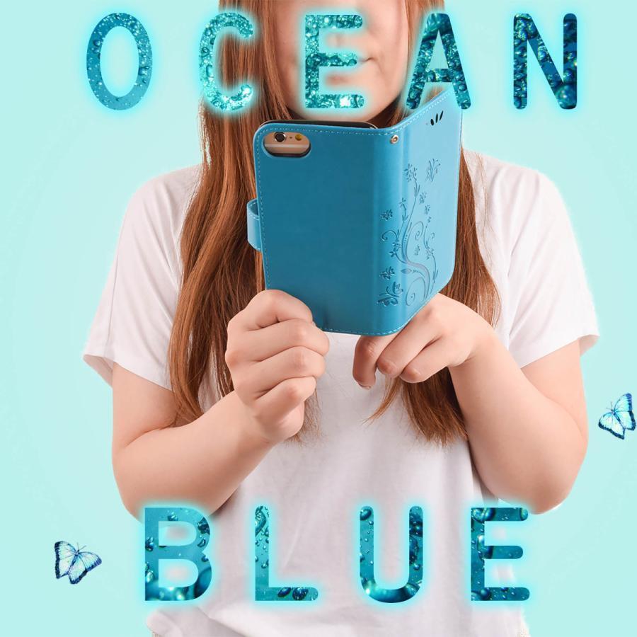花に舞う蝶々♪ エレガントな蝶の型押しデザインの手帳型スマホケース