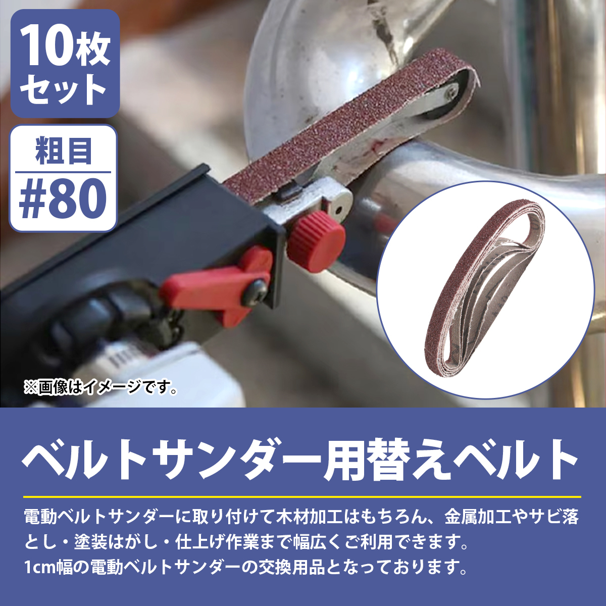 【送料220円】『#80 10mm×330mm』10枚セット エンドレス ベルト ペーパー 電動 ディスク サンダー 交換用 金属 鉄 研磨 幅10mm 10本 80番