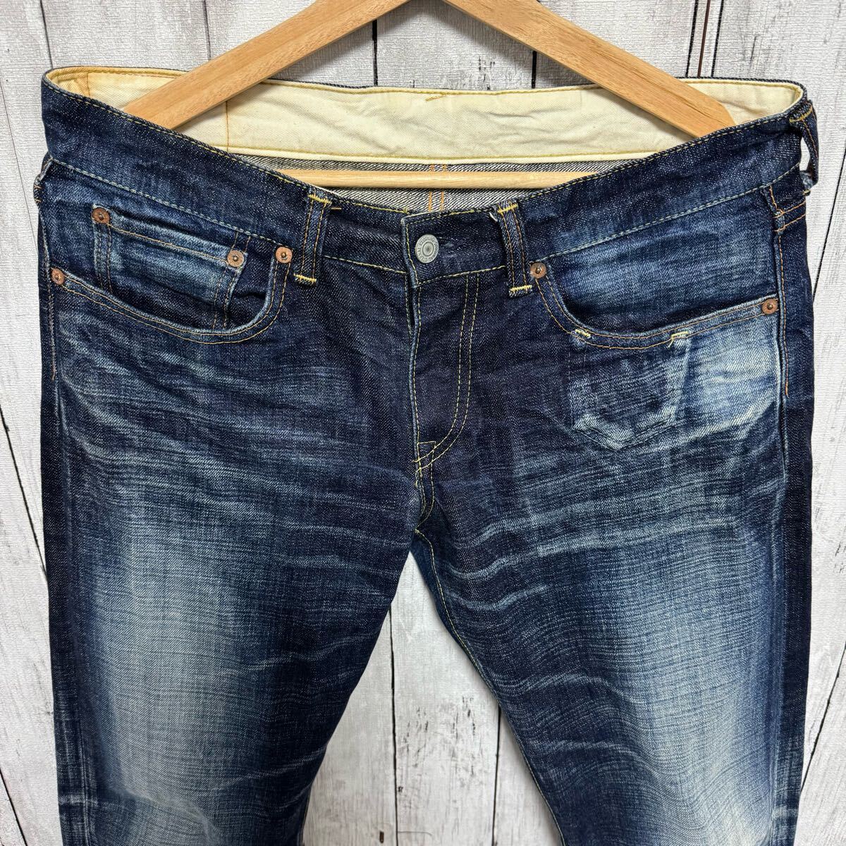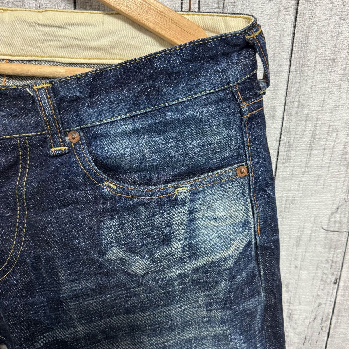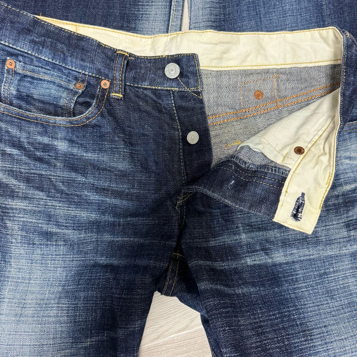 フロントボタンがワンボタンの珍しいジーンズです。