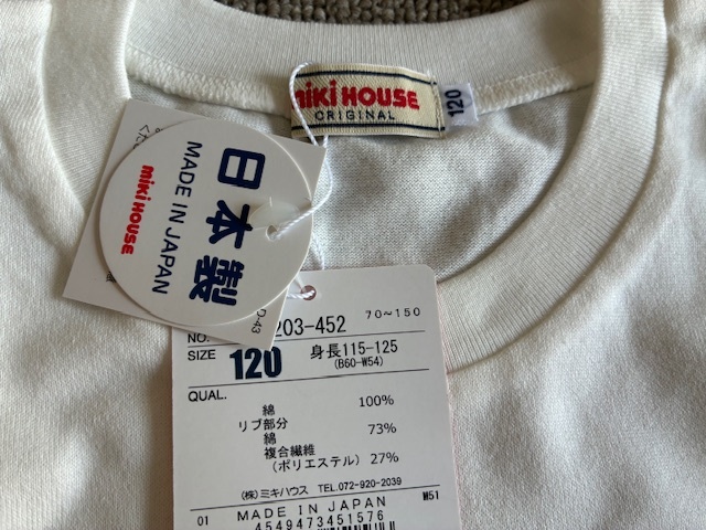 ★新品miki HOUSEミキハウスロゴ半袖Tシャツ120★白 送料\185