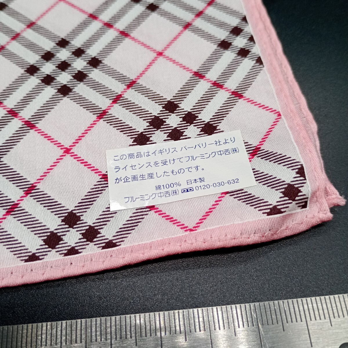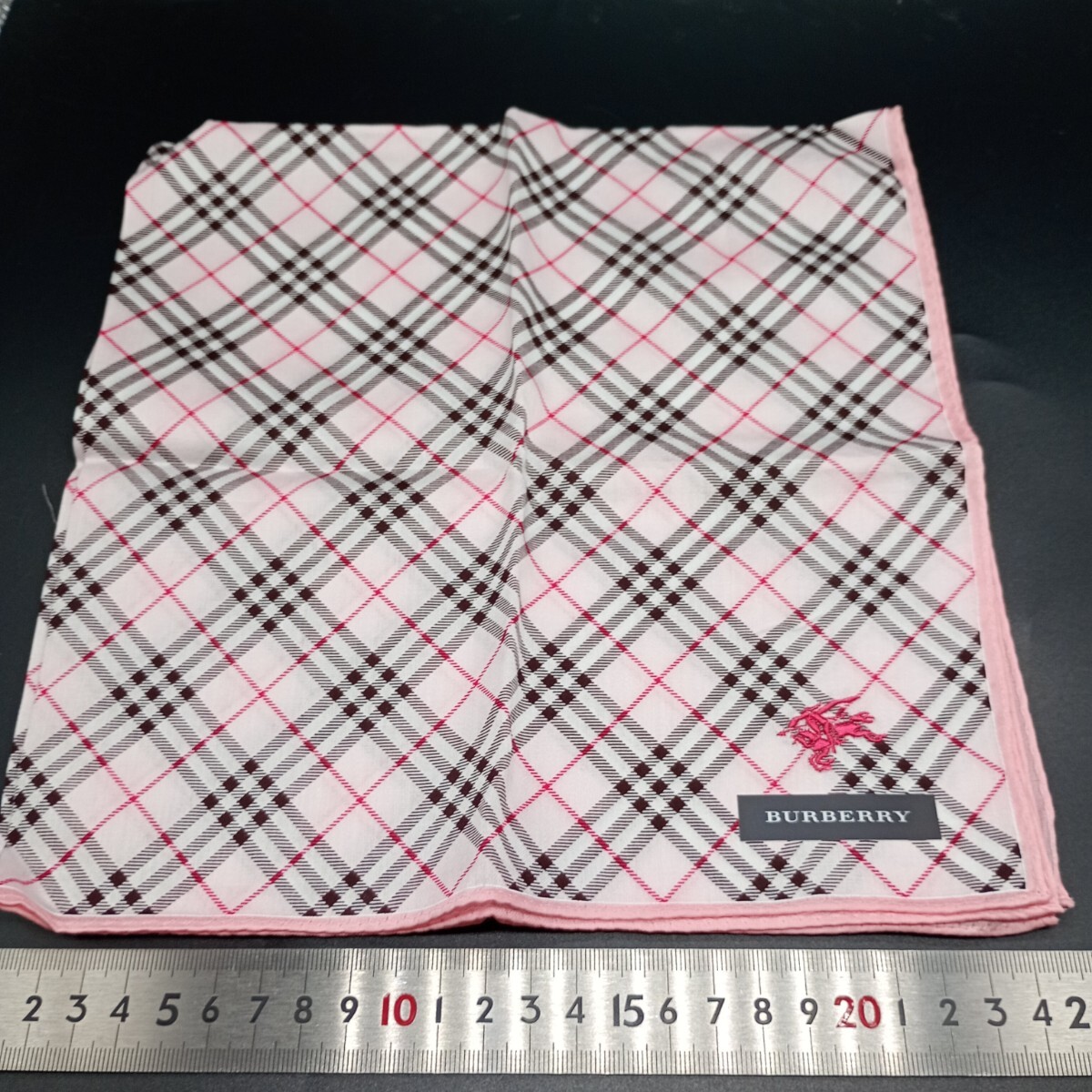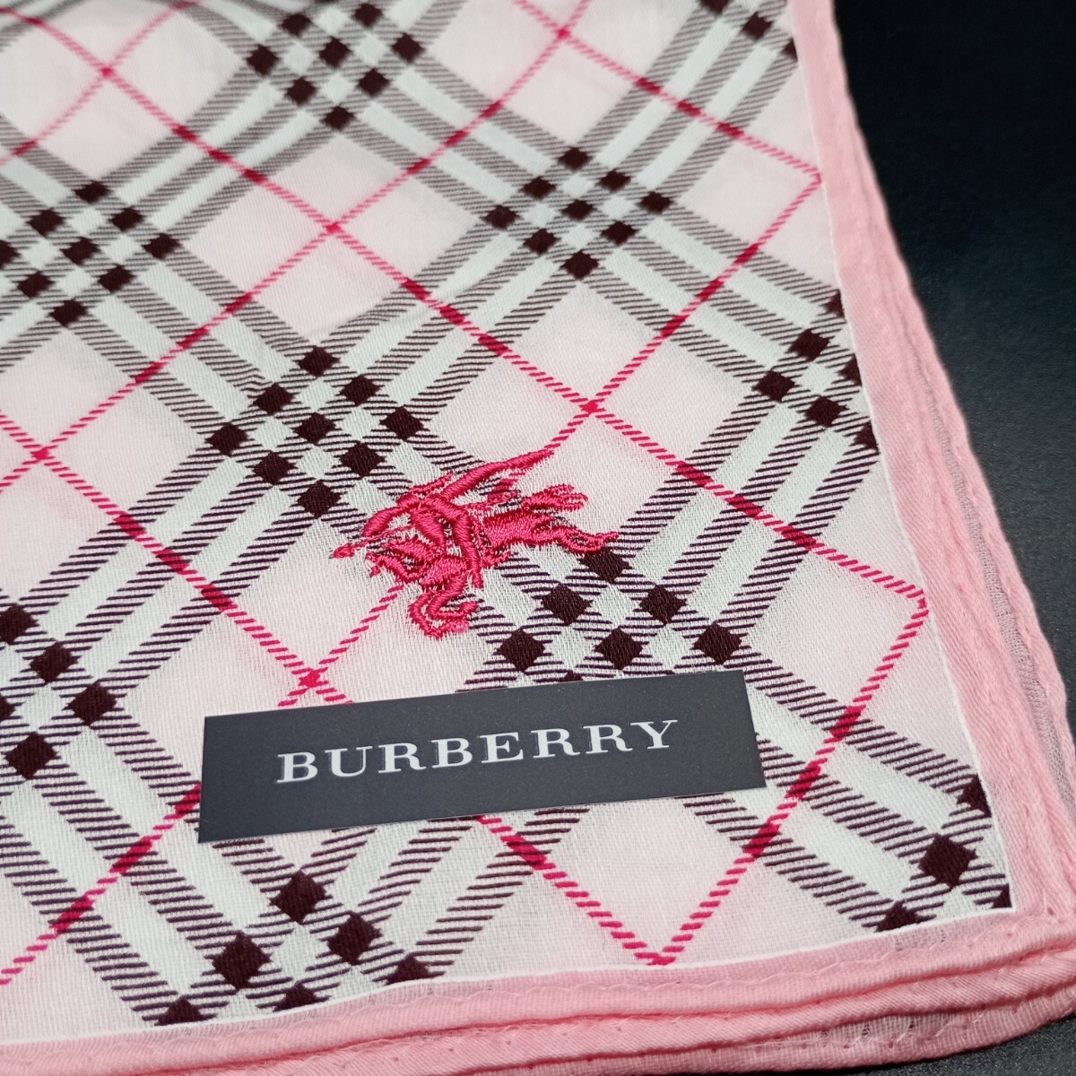 BURBERRY バーバリー ハンカチ ピンク チェック ふちピンク ピンクホースマーク刺繍 no.3020