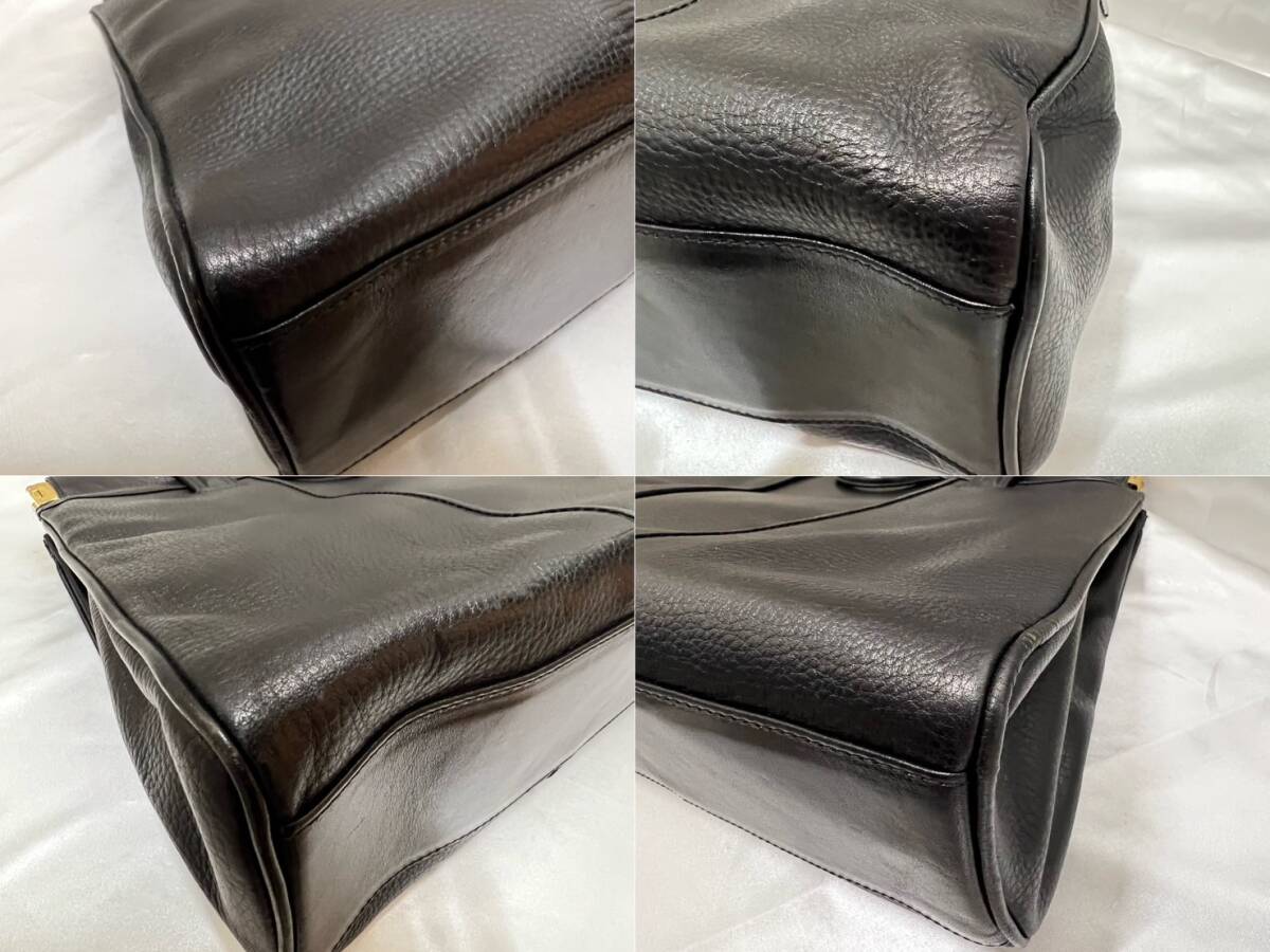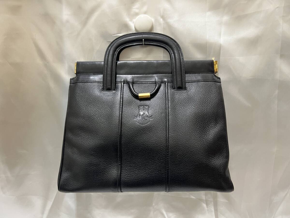 B) ABRANDI バネ口 トートバッグ レザー 革 ブラック 黒 【中古美品】D119i