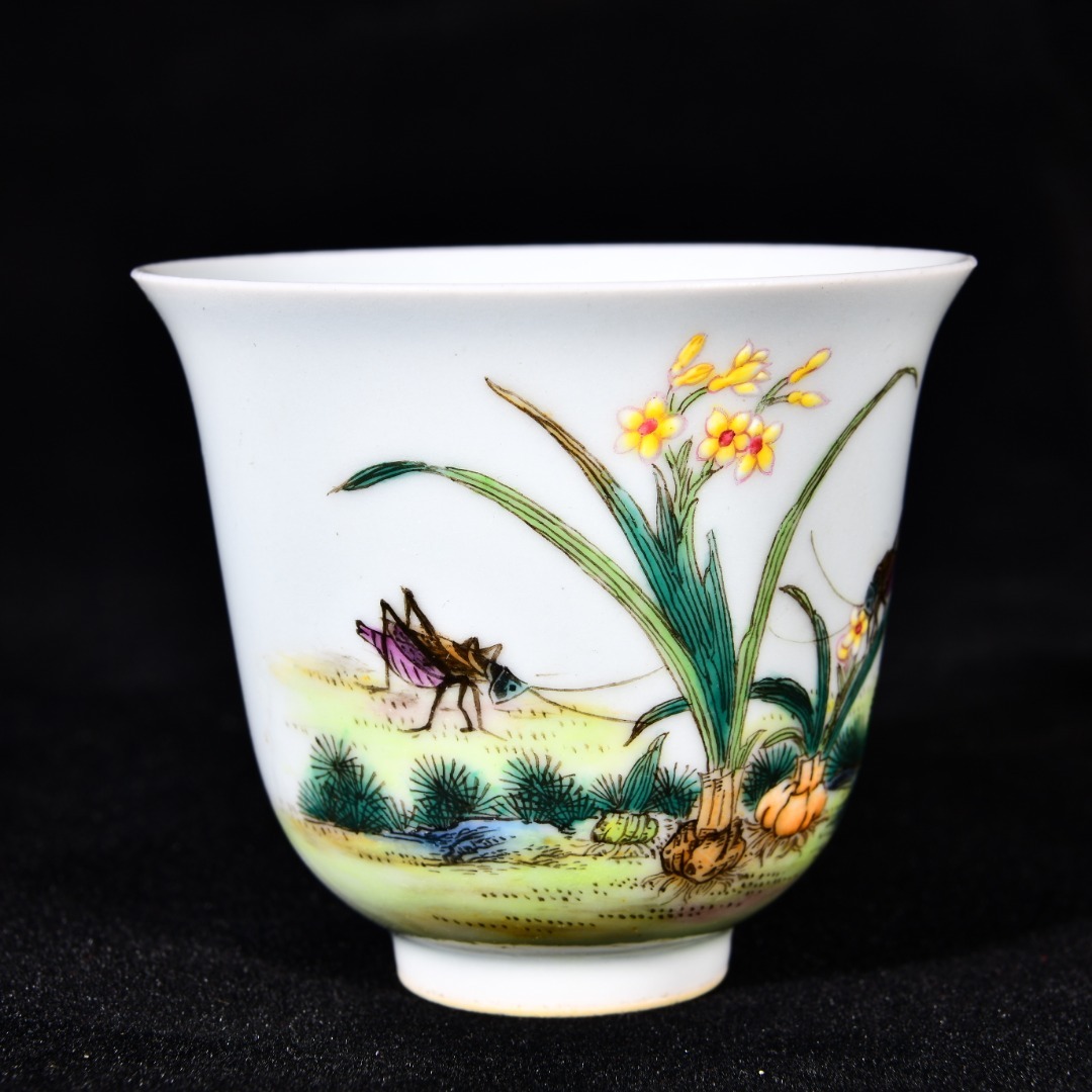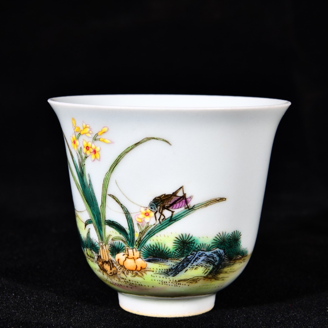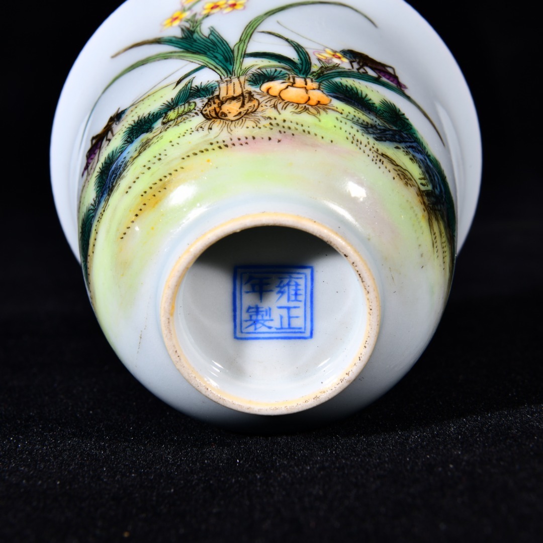 ◆旧家蔵出◆古美術 中国古玩 大清雍正年製款 粉彩  花草虫紋茶杯  置物 古賞物 擺件 骨董 時代物 A38