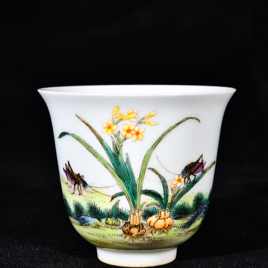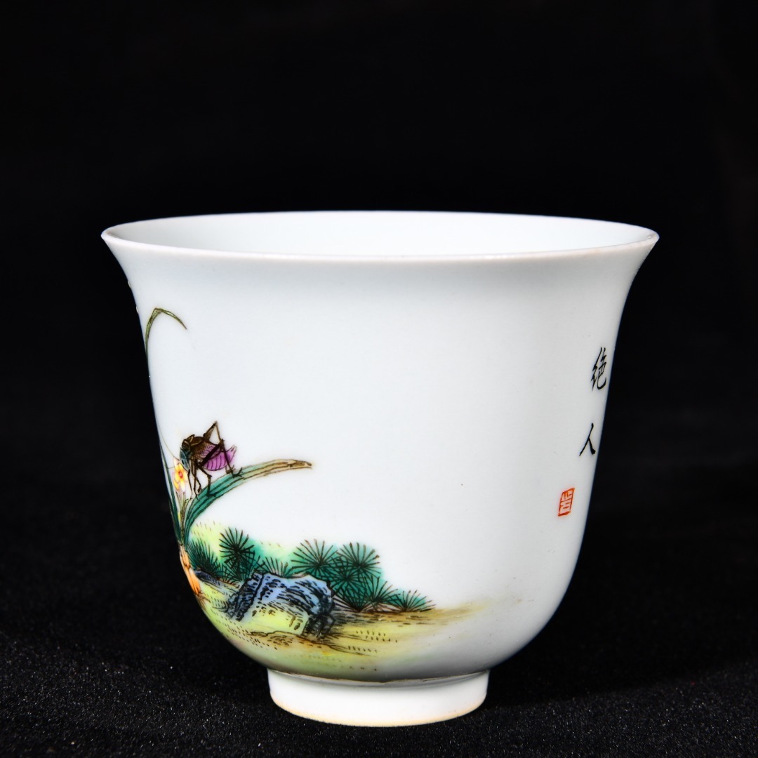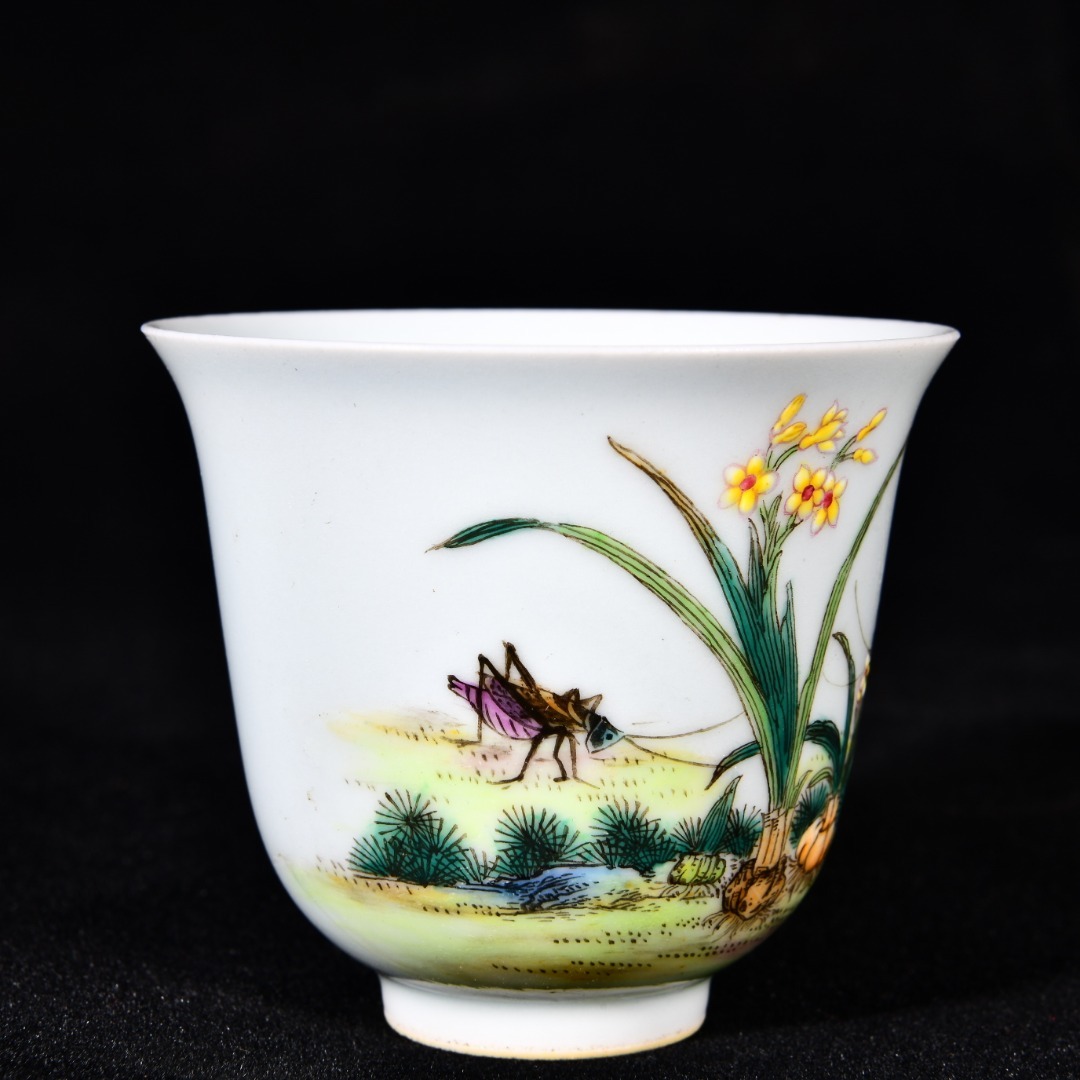 ◆旧家蔵出◆古美術 中国古玩 大清雍正年製款 粉彩  花草虫紋茶杯  置物 古賞物 擺件 骨董 時代物 A38