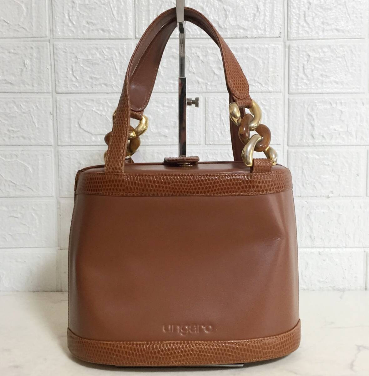 no35421 ungaro ウンガロ リザード型押 本革 レザー 2way ショルダー ハンド トート バッグ