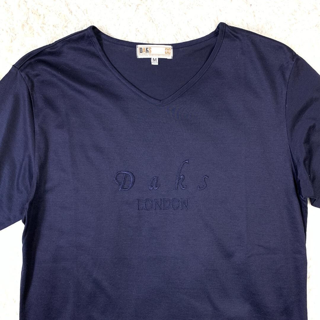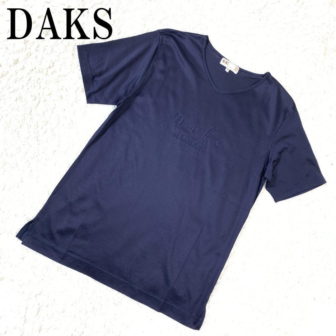 DAKS ダックス 半袖Tシャツ ネイビー 半袖カットソー ロゴ刺 濃紺 紺色 コットン100% M B595