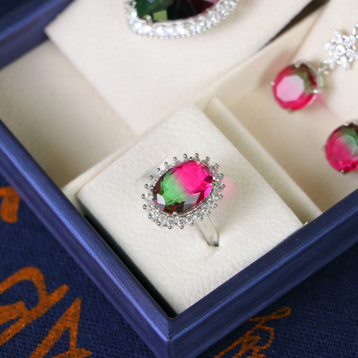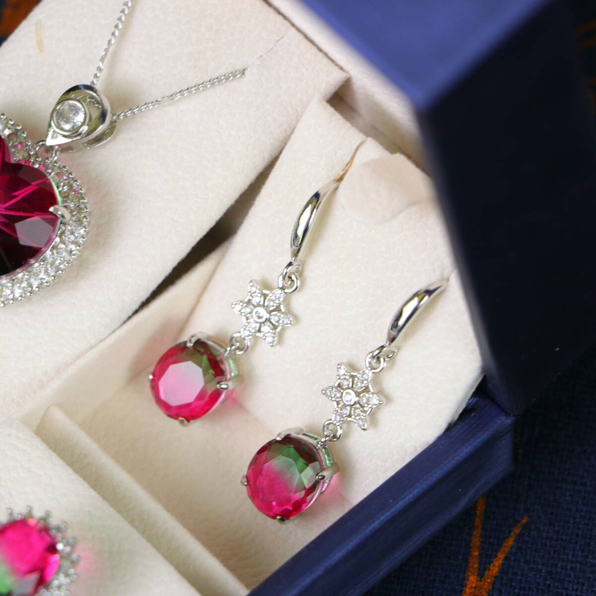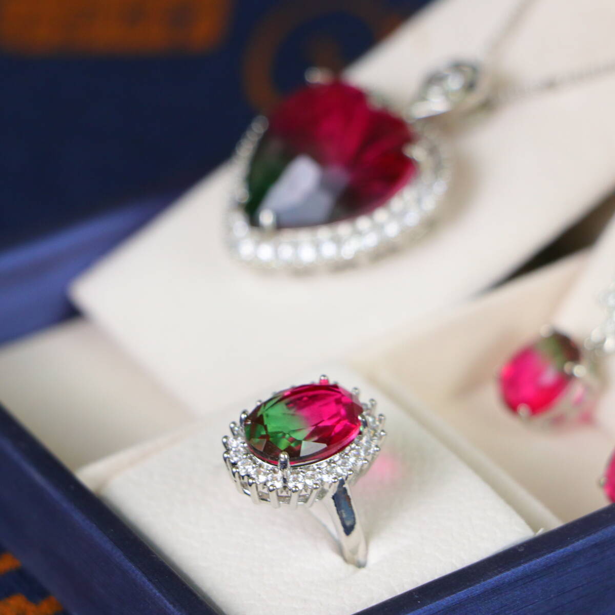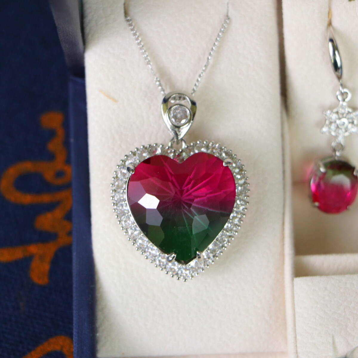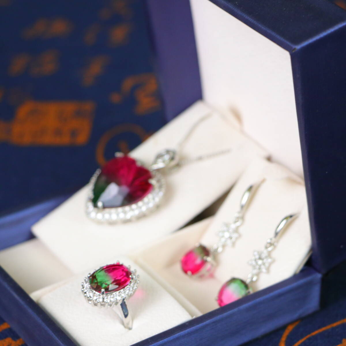 清時代 宮廷御供 高氷 宝石彫 漸変宝石 心形 耳飾 指輪 首飾 三件套 古擺件 時代物 古董品 骨董 收集 旧家蔵出し 唐物 中国古玩 古美術品