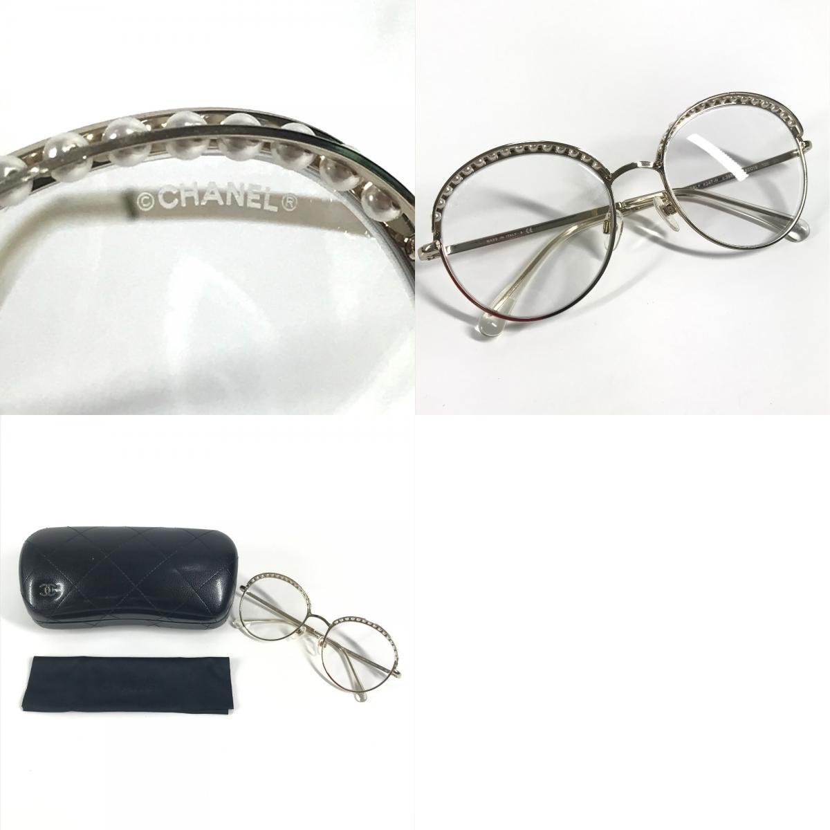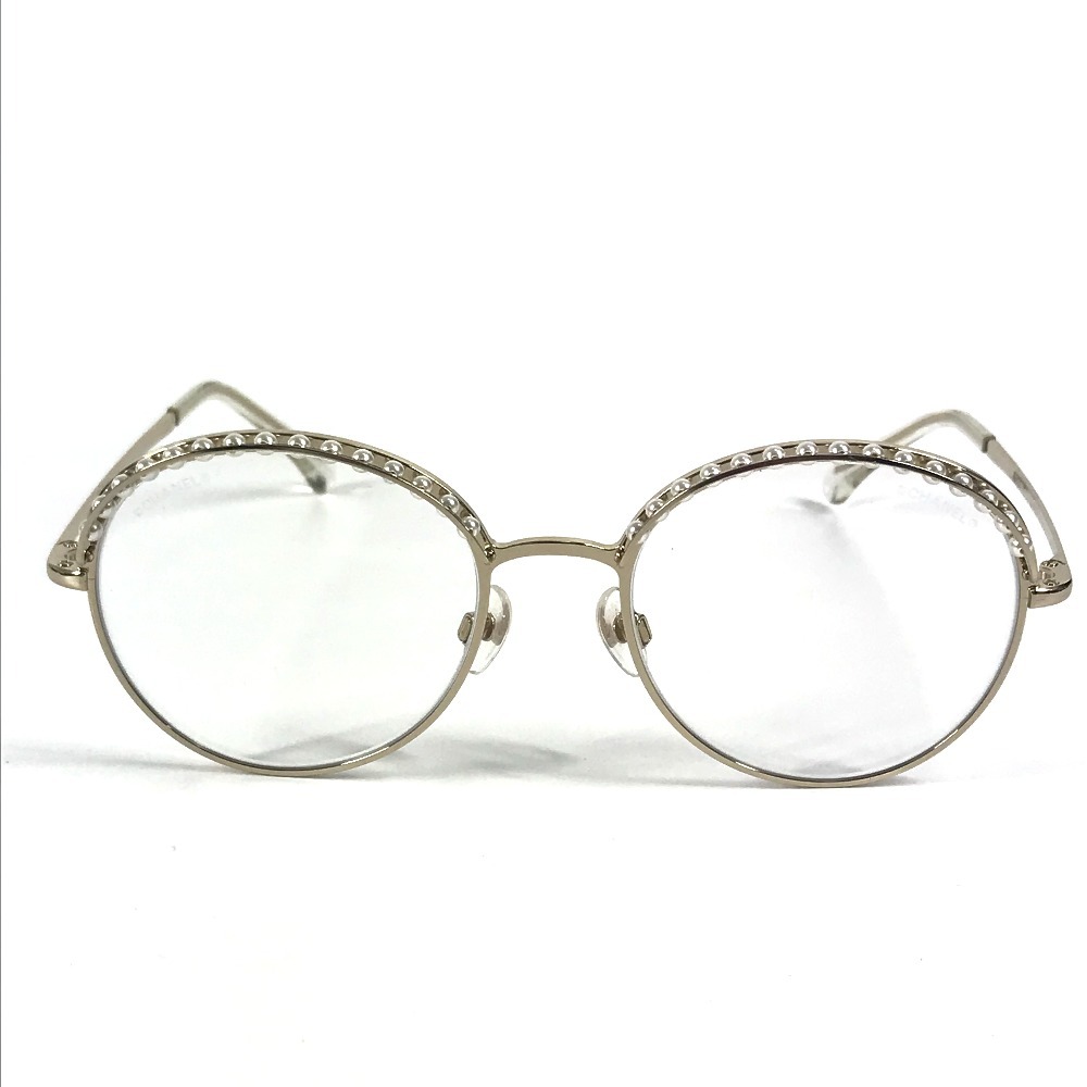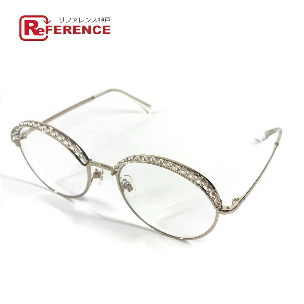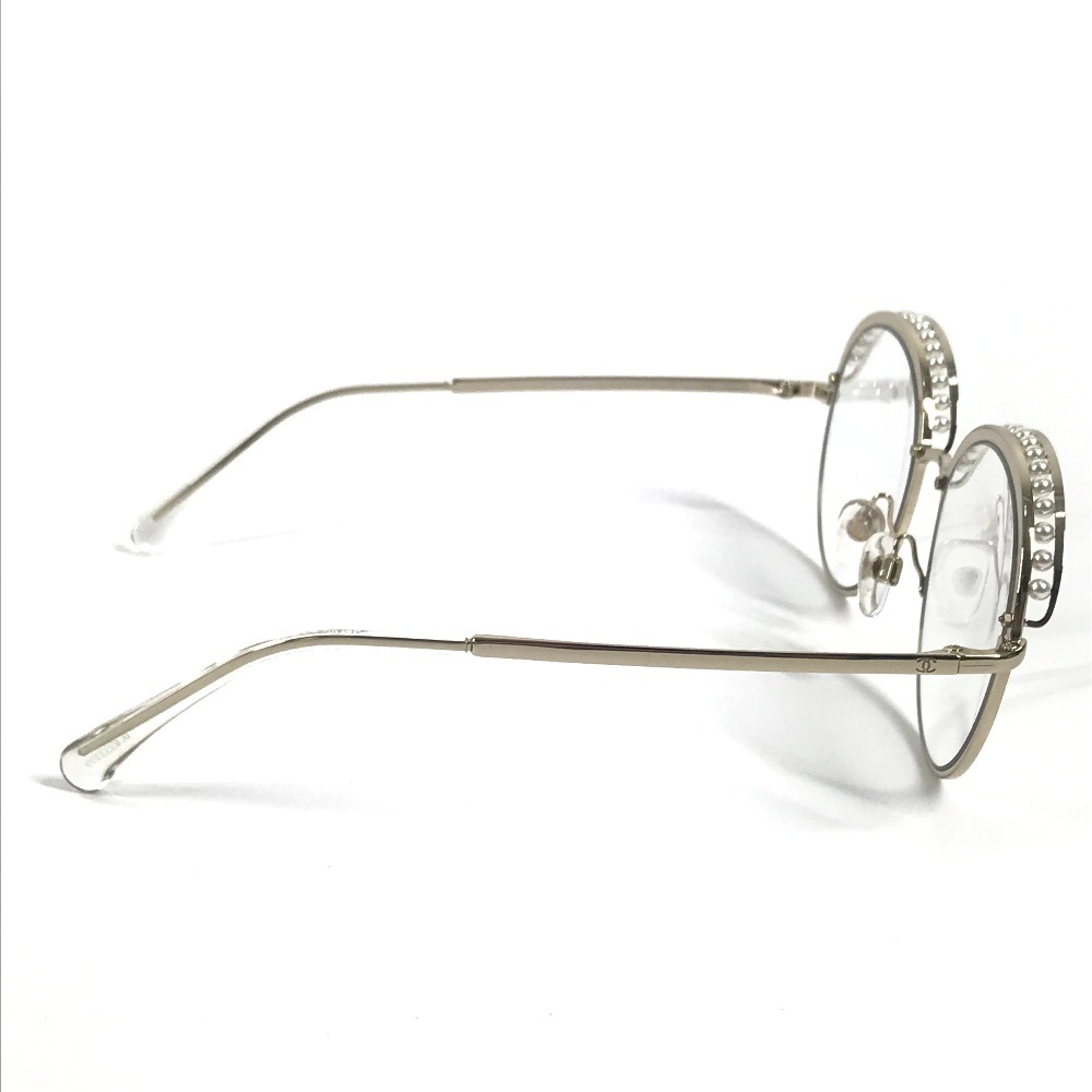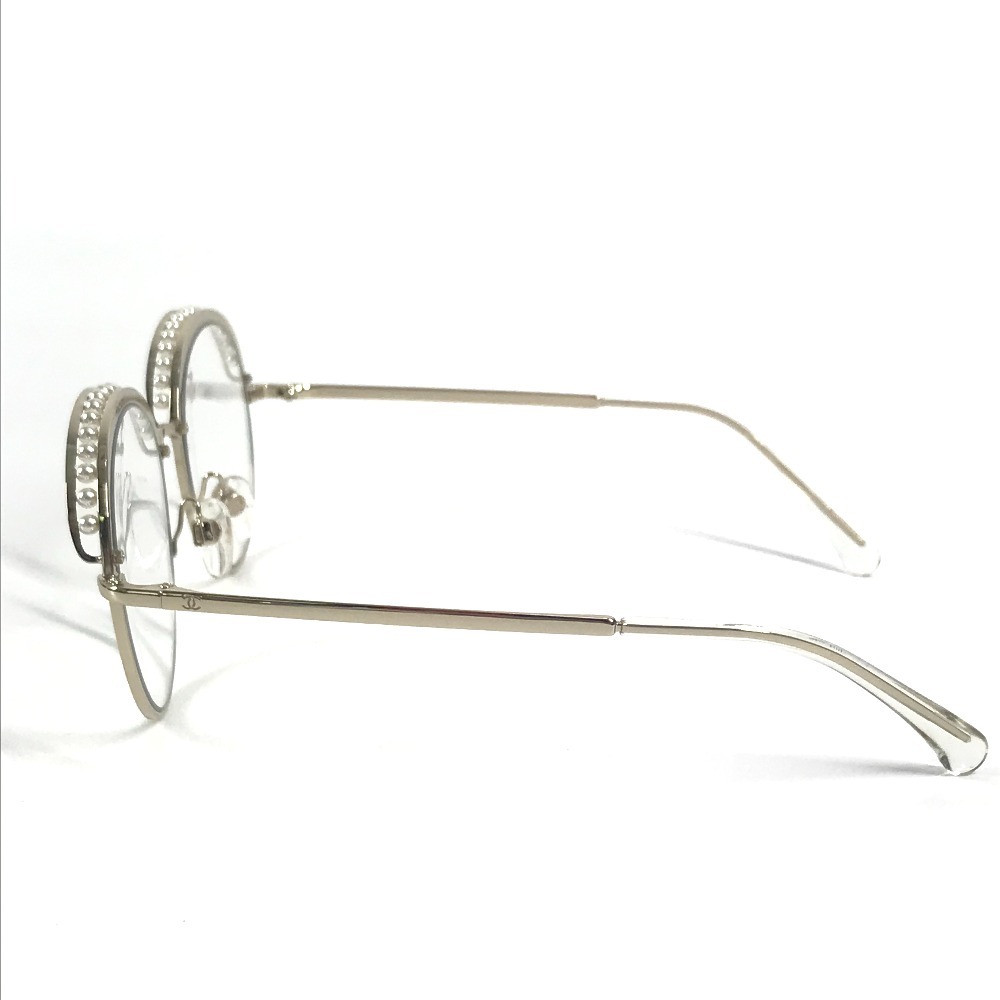 CHANEL シャネル 4247-H フェイクパール ファッション小物 アイウェア メガネ ラウンド クリア サングラス ゴールド レディース【中古】