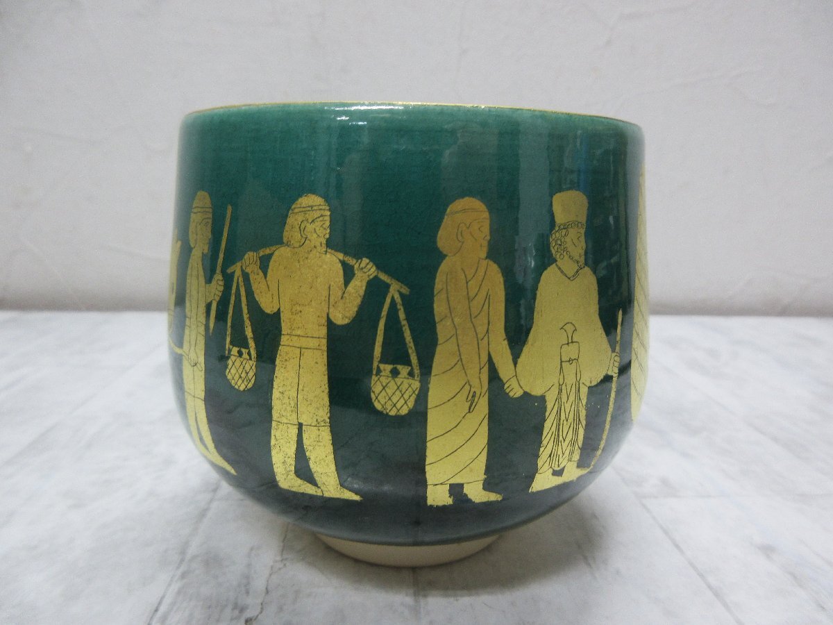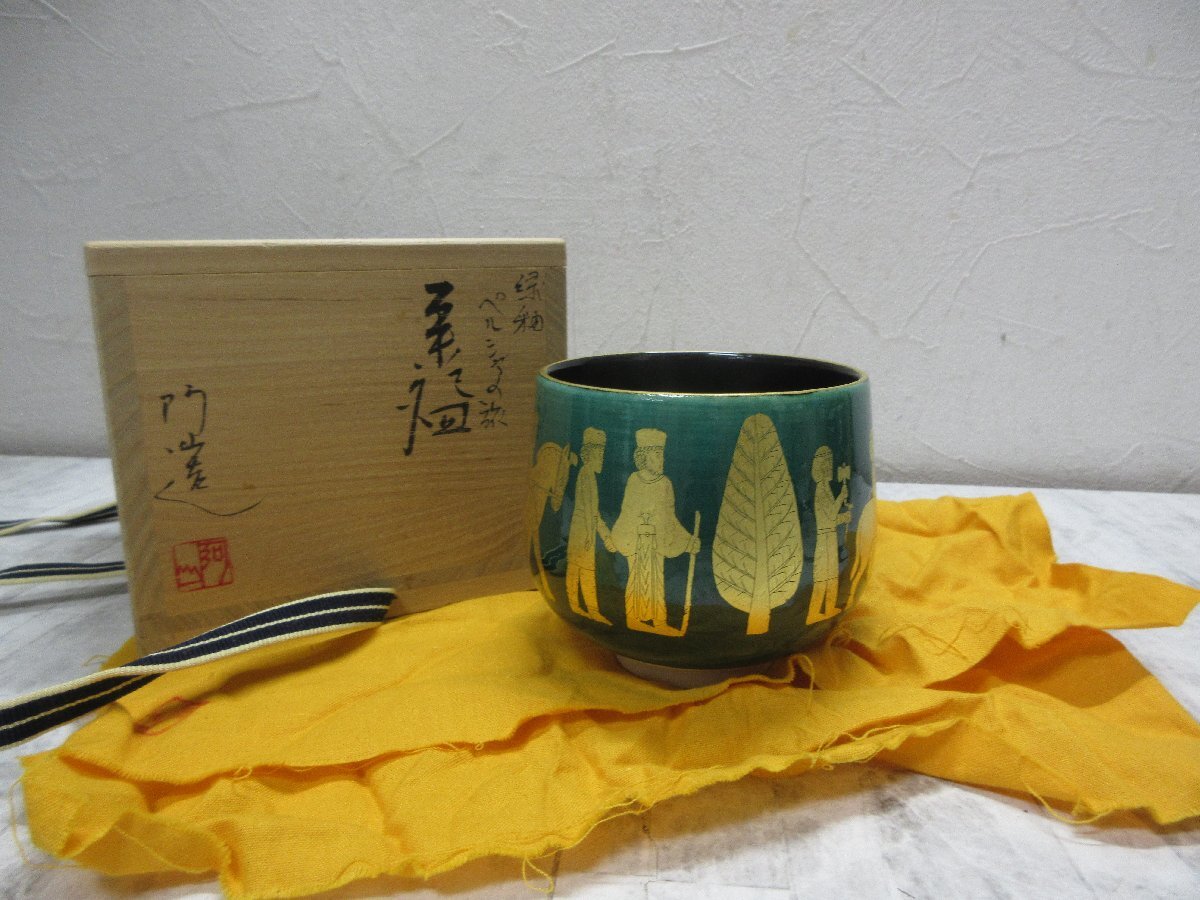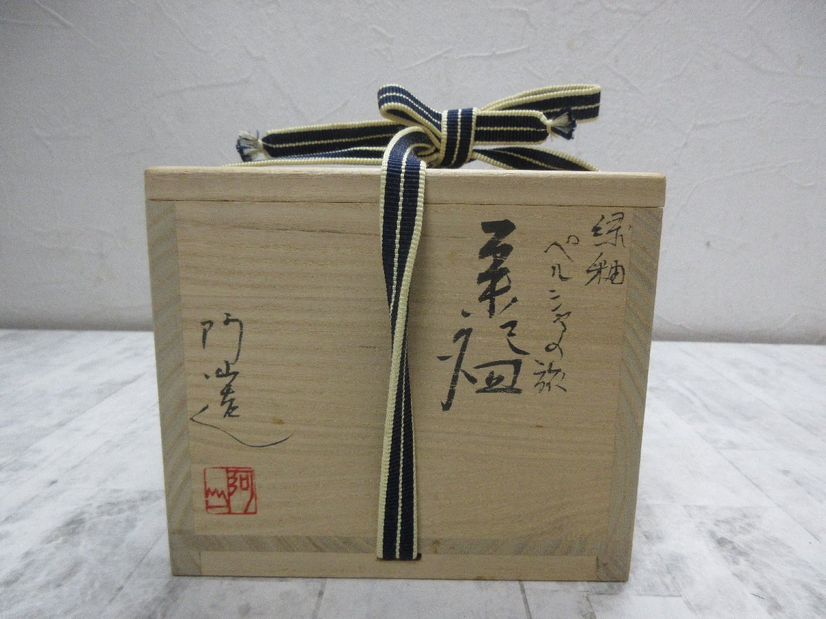 yo8 通次阿山 ペルシャの旅 緑釉 茶碗 茶器 茶道具 京焼 共箱 【星見】