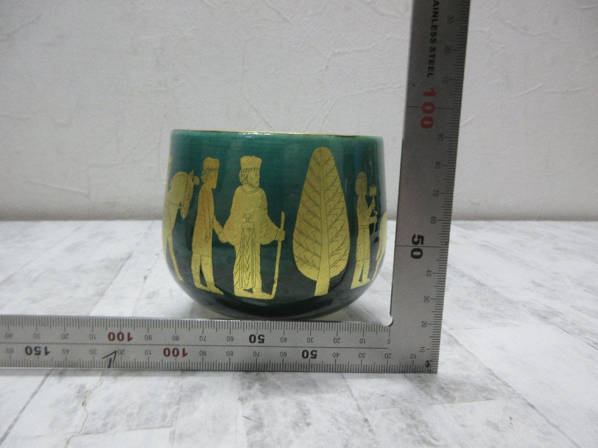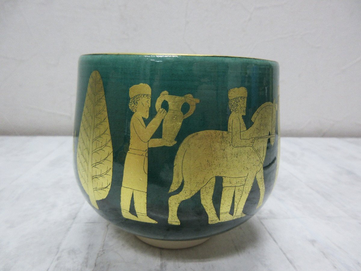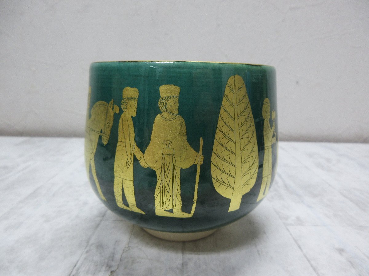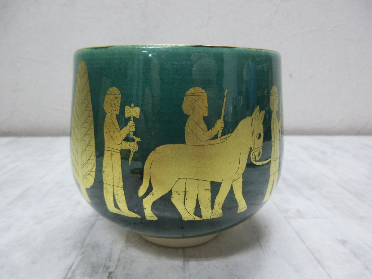 yo8 通次阿山 ペルシャの旅 緑釉 茶碗 茶器 茶道具 京焼 共箱 【星見】