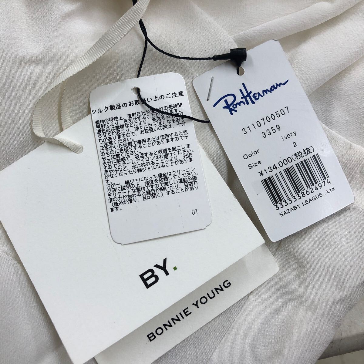 未使用 BONNIE YOUNG × Ron Herman ボニーヤング シルクブラウス サイズ2 チュニック 長袖 アメリカ製 オフホワイト レディース YF370