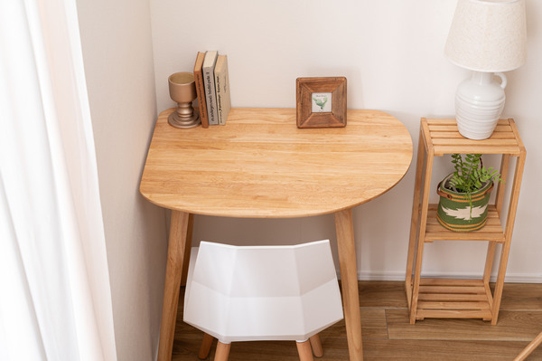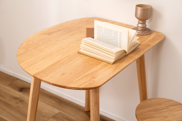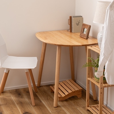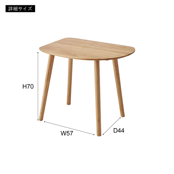 天然木のぬくもりを感じる北欧風デザインの「helppo」シリーズより個性的なフォルムのダイニングテーブルが登場しました。木目を活かしたデザインと、エッジを極力落とした丸みのあるフォルムが優しい印象を与えます。 サイズ:W83×D60×H72 材質・素材:天然木(ラバーウッド) ラッカー塗装 組立式 静的耐荷重:設定なし ※こちらの商品は、北海道、沖縄県及び離島へお届けできません。ダイニングテーブル コンパクト 壁寄せ 壁付け 省スペース 角丸 シンプル 北欧 木製 天然木 韓国インテリア ナチュラル おしゃれ※イメージ画像に含まれる備品等は商品に含まれません。(例:販売商品のテーブル等に合わせたチェアや敷物、カップやディシュ等)