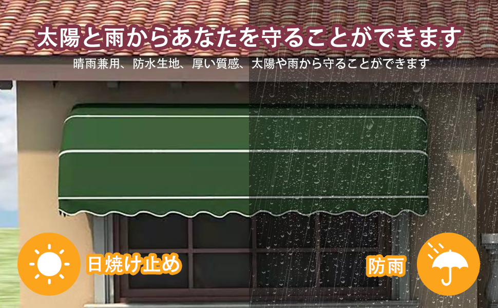 【素材の特性】オーニングテント 支柱は高品質の亜鉛メッキ鋼管で作られ、頑丈で耐久性があり、高い安定性を誇ります。折りたたみ式の日よけは高密度で通気性が豊かで、耐光性があり、変形しにくい特性を備えています。オーニングシェード 高強度のサポートと柔軟で縮まない生地は、夏や雨の日に最適です。