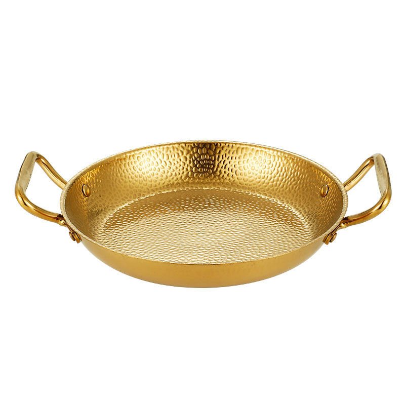 上質パエリア鍋 プロ用 304ステンレス鋼パエリアパン グリルパン漆ハンマーフライパン厚手 (シルバー,30CM)