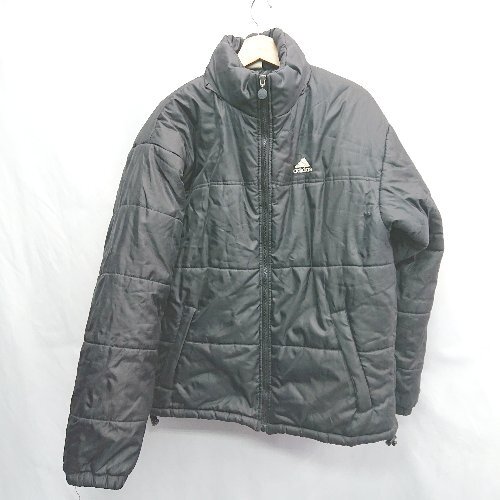 ◇ adidas ハイネック ロゴ刺? 冬向け ドローコード 長袖 ダウンジャケット サイズL ブラック系 メンズ E