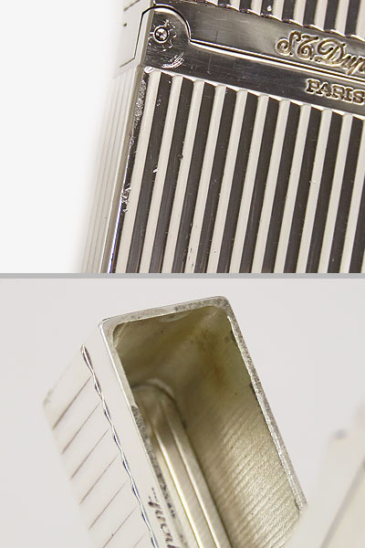 表面に薄キズや小キズ、フチに当てキズがございますが、目立つダメージはなくまだまだご愛用いただけるお品物になります。 ※開閉時デュポン独特の重厚な金属音がします。 ※着火確認済みです。 ※開閉音が気になる方やこだわりのある方は、ご購入前に電話にてご確認いただきますようお願いいたします。 046-884-8130 |