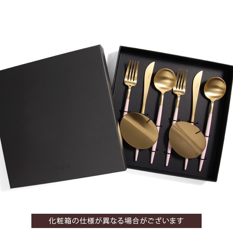 | サイズ | ・スプーン/縦21cm ・ナイフ/縦22cm ・フォーク/縦22cm ・カトラリーレスト/縦7cm 横9cm 高さ2cm ・化粧箱/縦26cm、横26cm、高さ3.5cm |