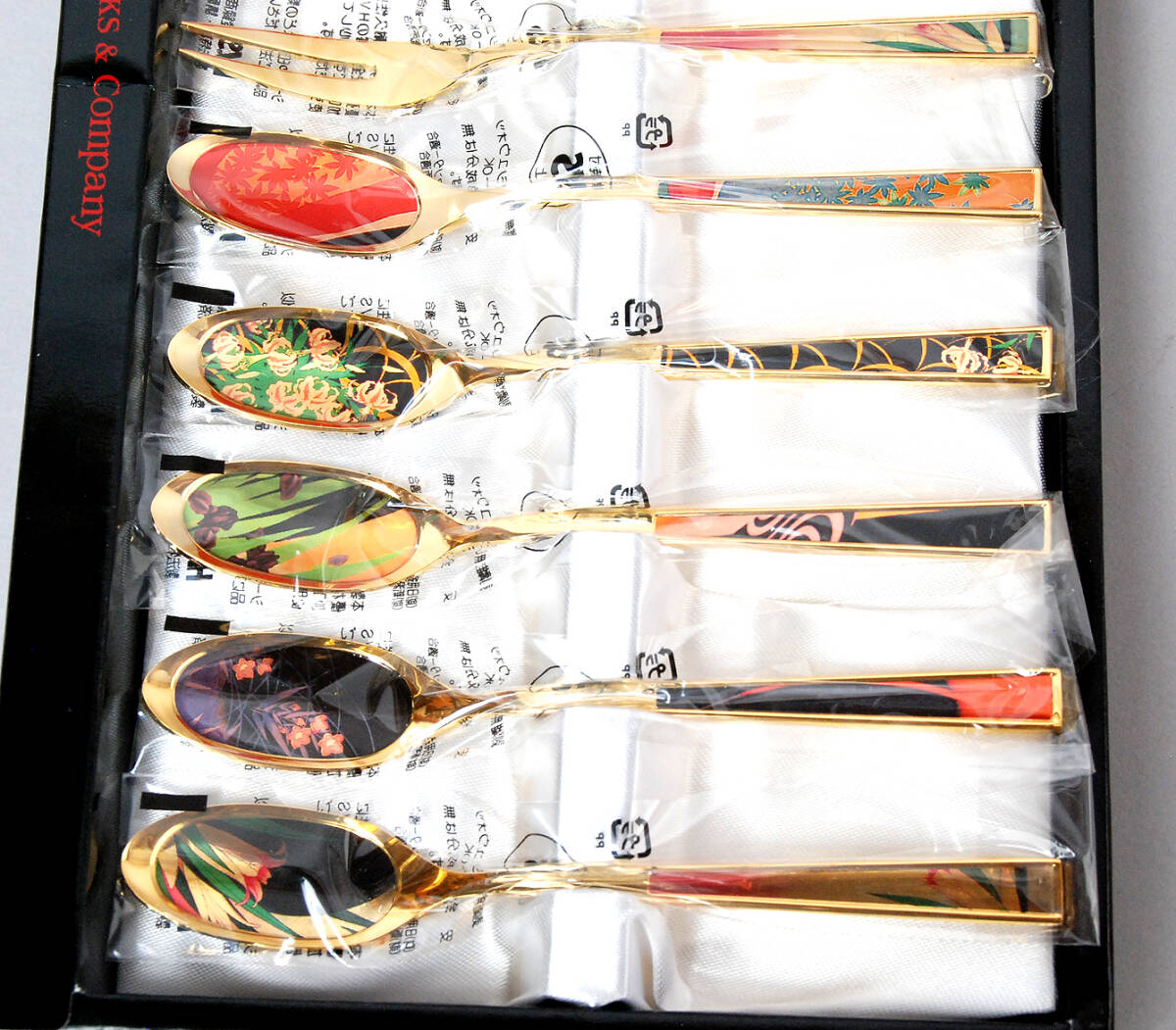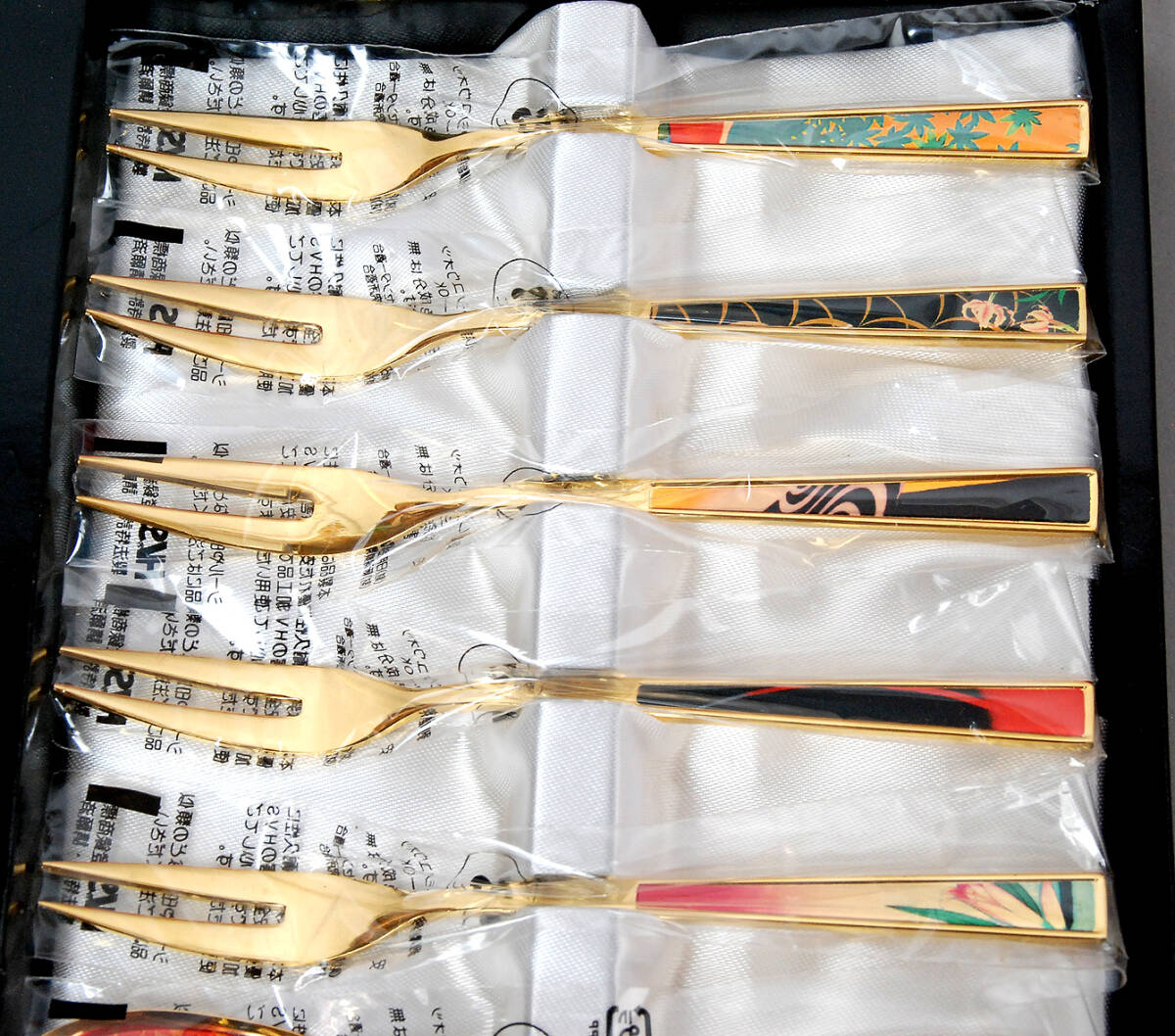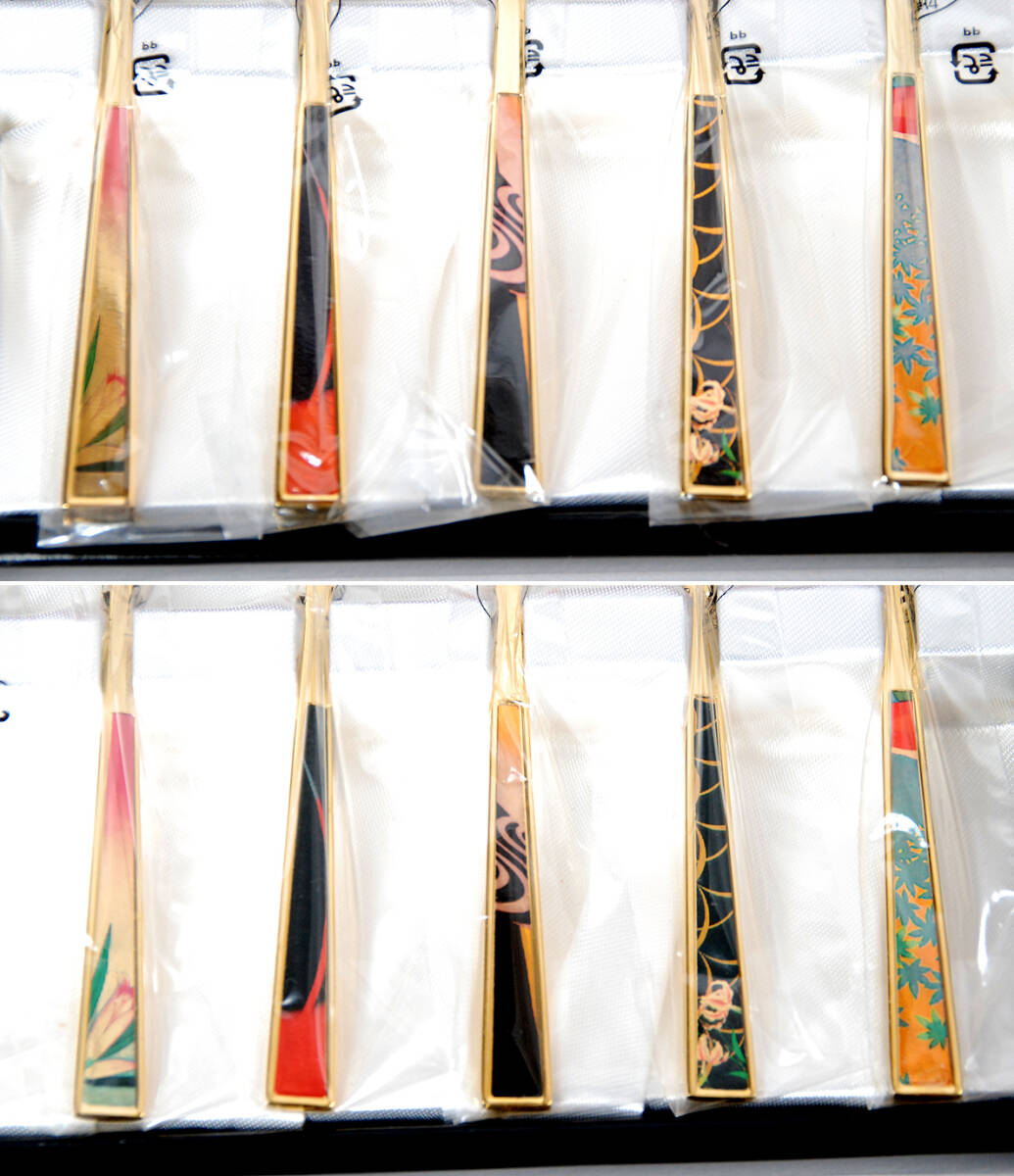 | * 商品説明 * ICHRO TSURUTAのティースプーンとピックフォーク5本づつのセットです。長さは約14cmです。18-10ステンレスに金メッキ仕上げです。赤い箱に入った未使用品です。ぜひお役立てください。 |